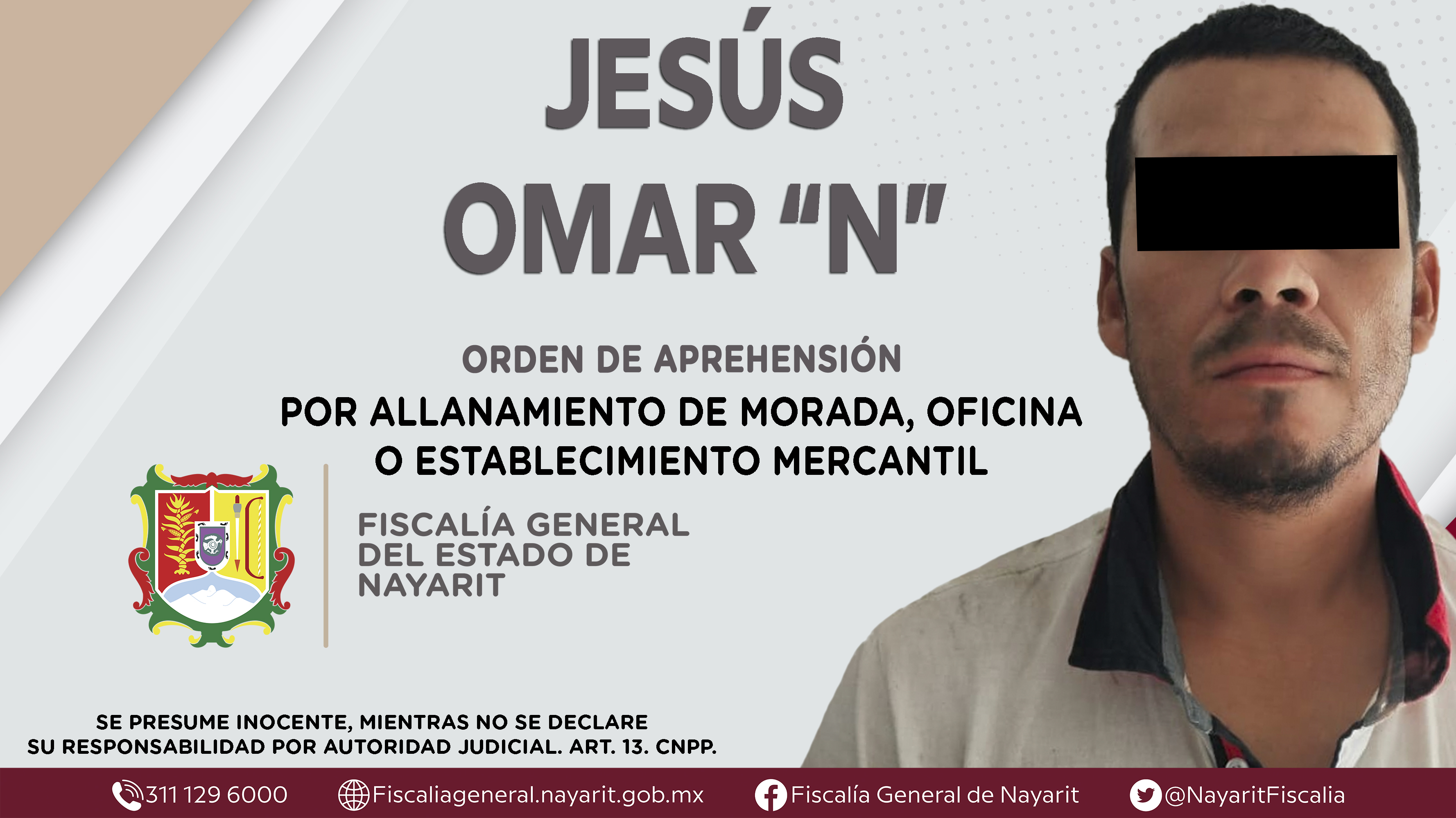 La Fiscalía General del Estado a través de la Agencia de Investigación Criminal dio cumplimiento a una orden de aprehensión en la ciudad de Tepic contra Jesús Omar “N”, por su presunta participación en hechos que bajo la apreciación de la ley ...