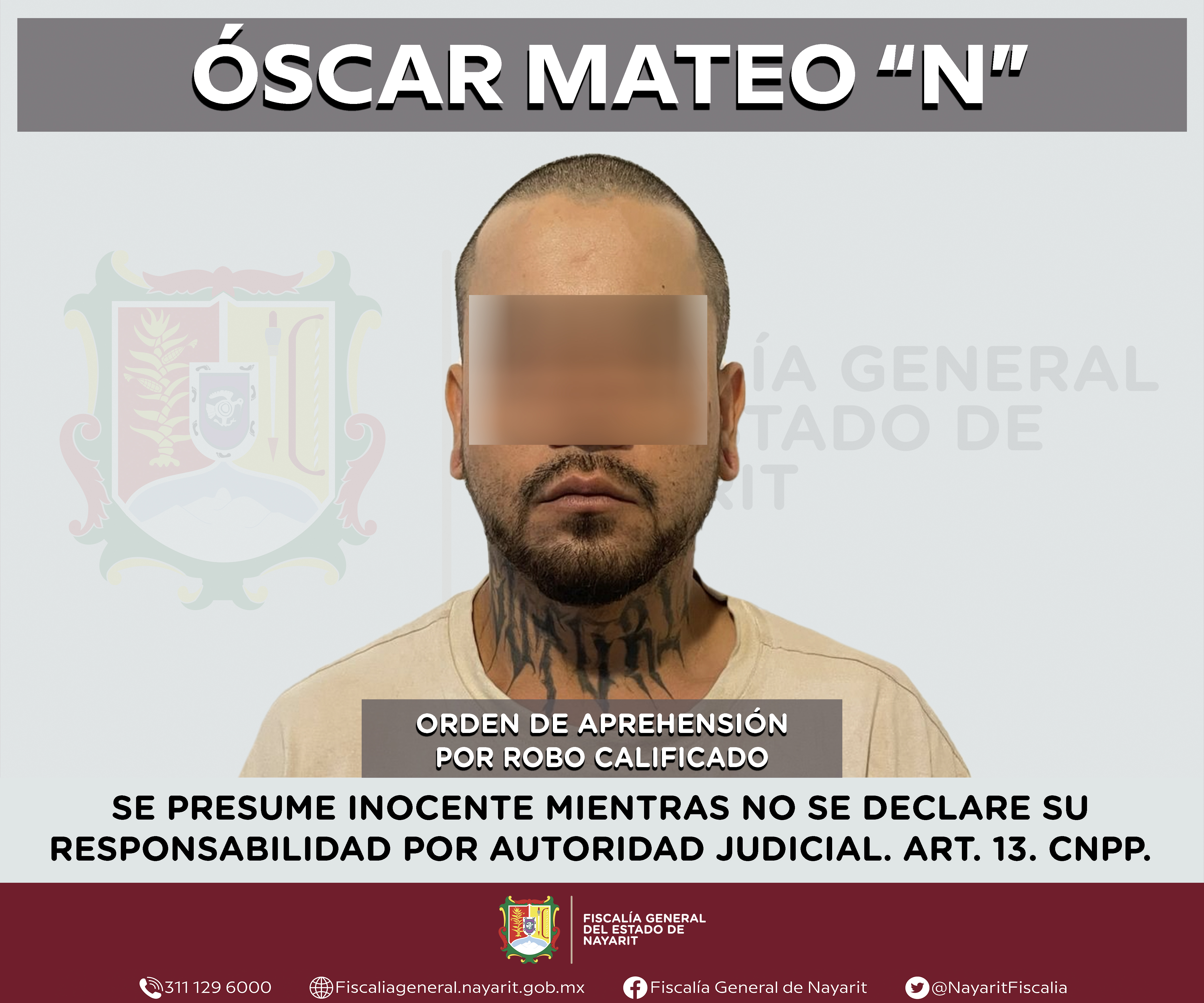 La Fiscalía General de Nayarit a través de la Agencia de Investigación Criminal ejecutó una orden de aprehensión en la ciudad de Tepic contra José Antonio “N”, por su presunta participación en hechos que según apreciación de la ley encuadran...