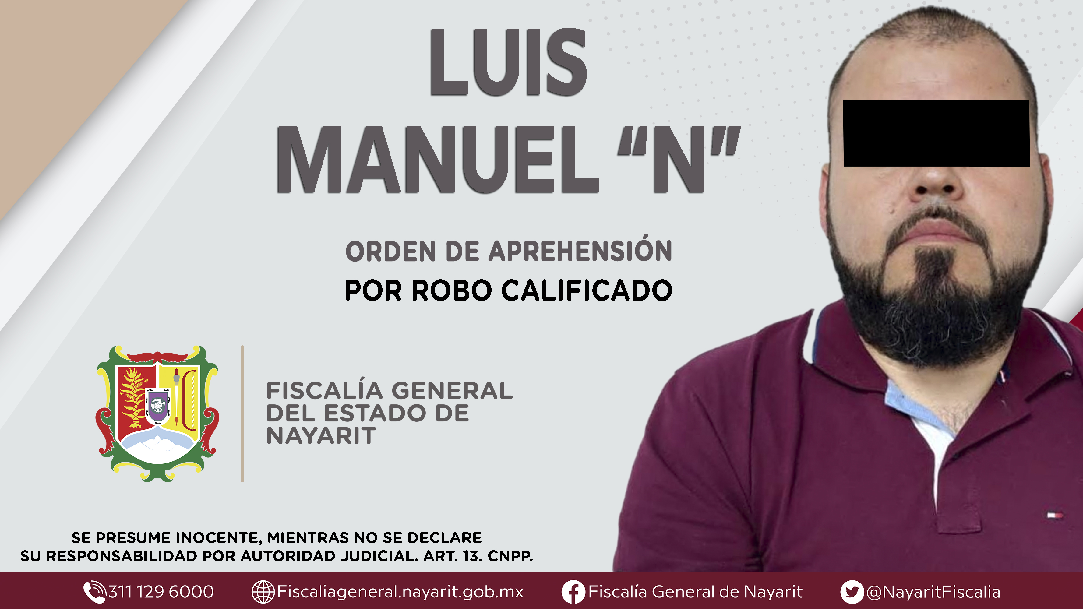Elementos de la Agencia de Investigación Criminal de Nayarit ejecutaron una orden de aprehensión en el interior del poblado Atonalisco, municipio de Tepic contra Luis Manuel “N”, por su presunta participación en hechos que según apreciación de l...