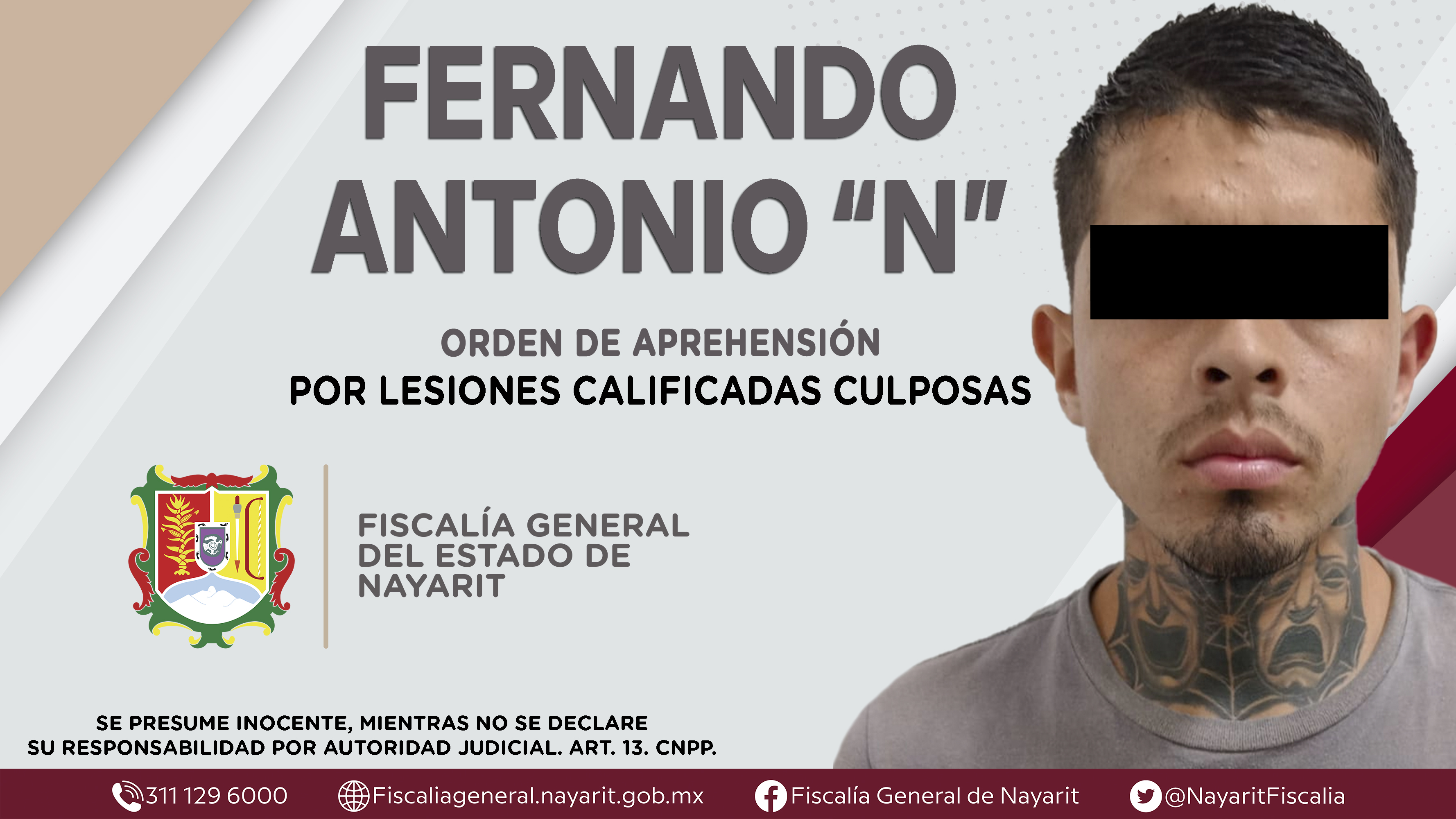 Elementos de la Agencia de Investigación Criminal dieron cumplimiento a una orden de aprehensión en la capital nayarita contra Fernando Antonio “N”, quien es originario y vecino de la ciudad de Tepic, por su presunta participación en hechos que ba...
