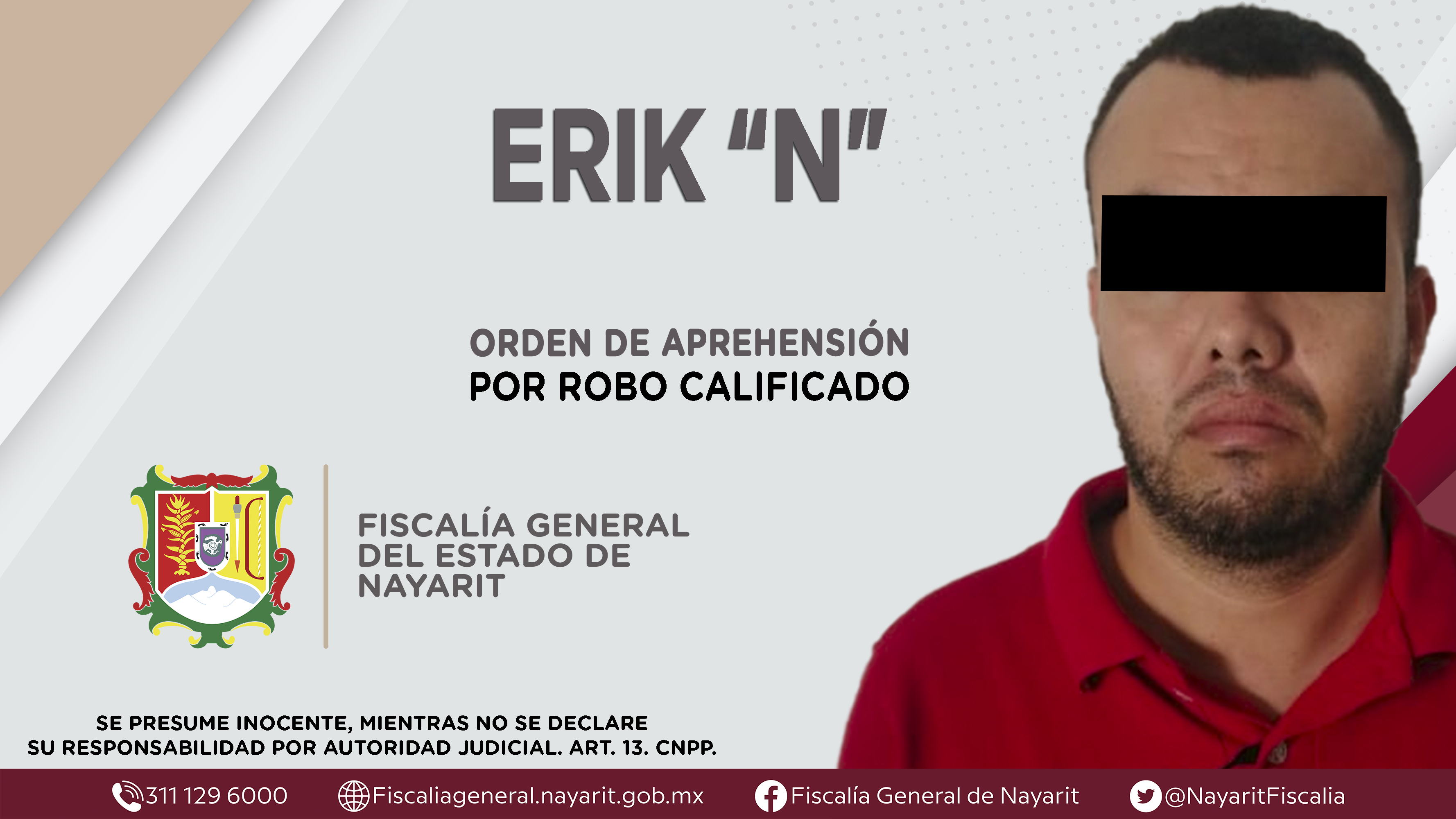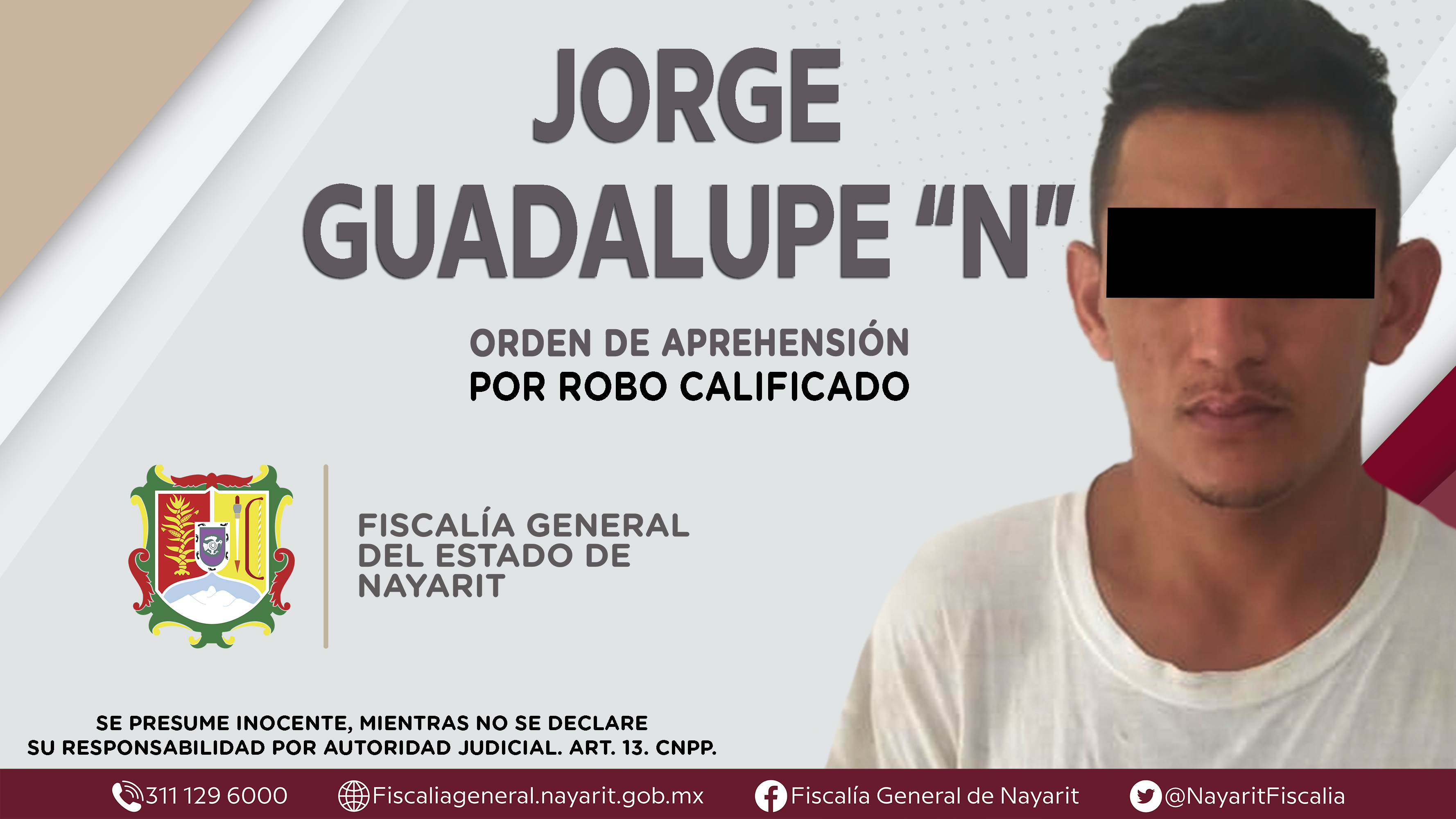 La Fiscalía General de Nayarit a través de la Agencia de Investigación Criminal dio cumplimiento a una orden de aprehensión en la ciudad de Tepic contra Yoswar Iván “N”, por su presunta participación en hechos que según apreciación de la ley ...