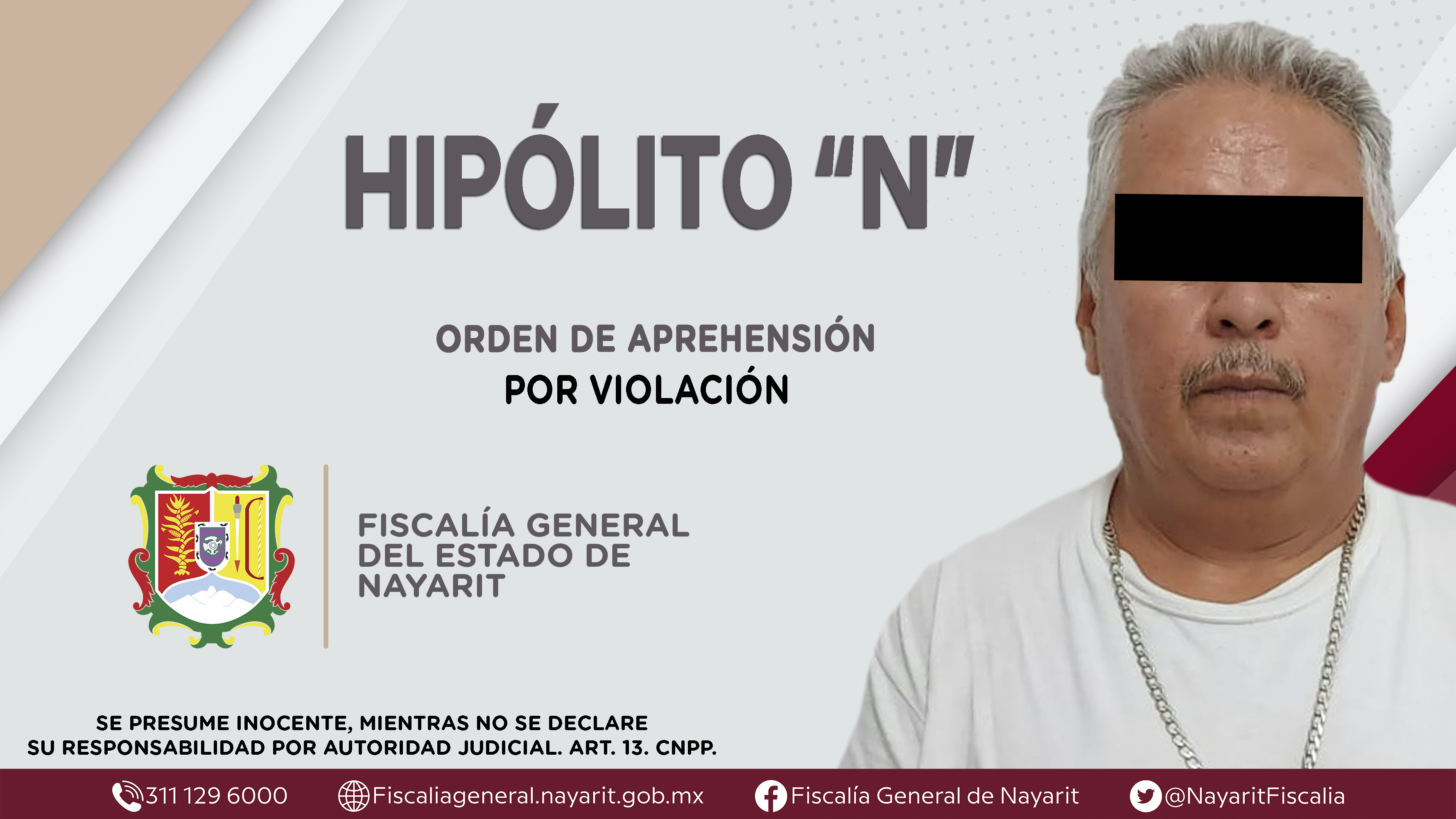 Elementos de la Agencia de Investigación Criminal ejecutaron una orden de aprehensión en el municipio de Bahía de Banderas contra Hipólito “N”, originario del municipio de Taxco de Alarcón, Guerrero y vecino de Puerto Vallarta, Jalisco, por su p...