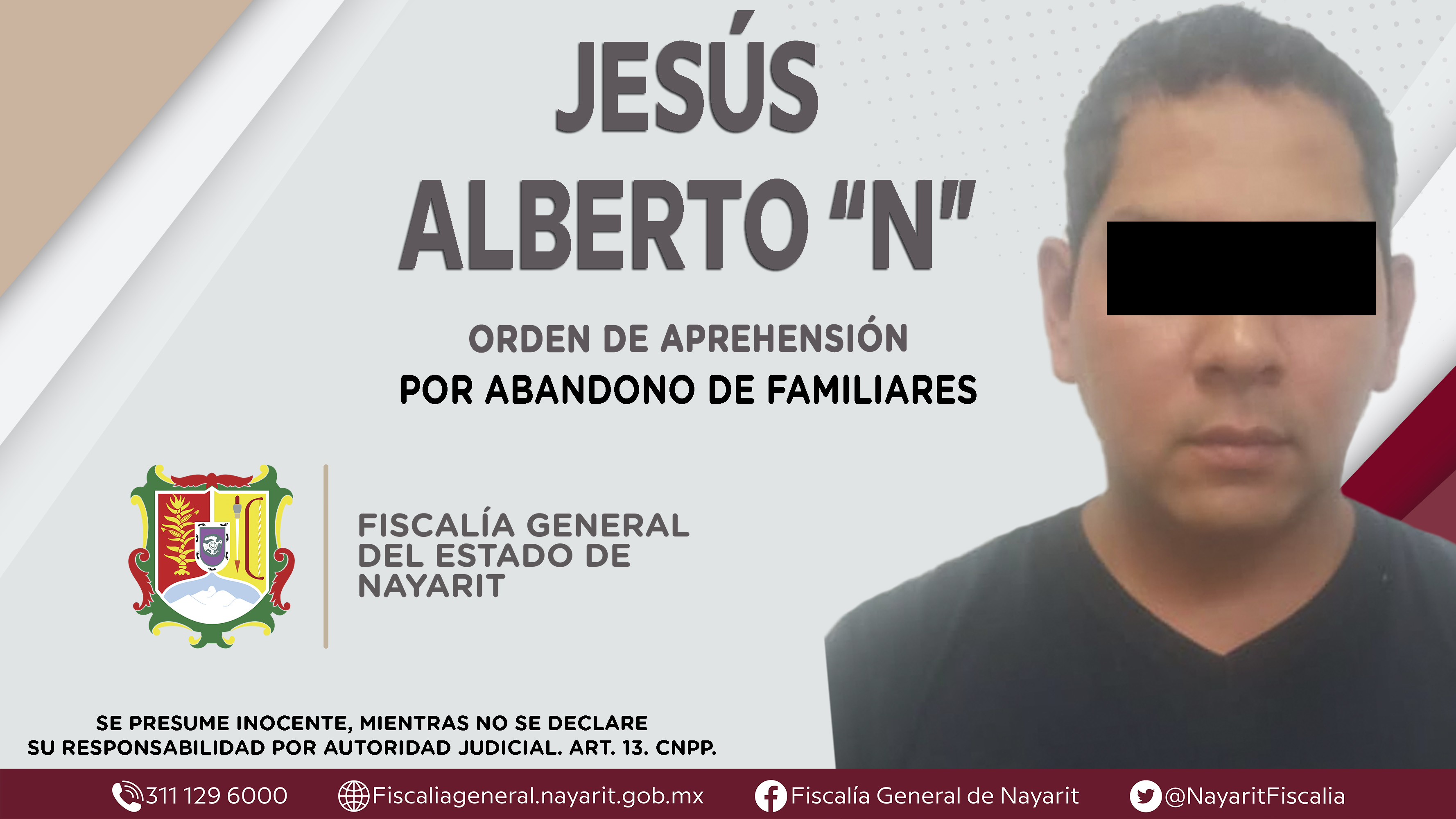 Boletín 1575/2022 | CAPTURADO EN SANTIAGO IXCUINTLA POR ABANDONO DE FAMILIARES
