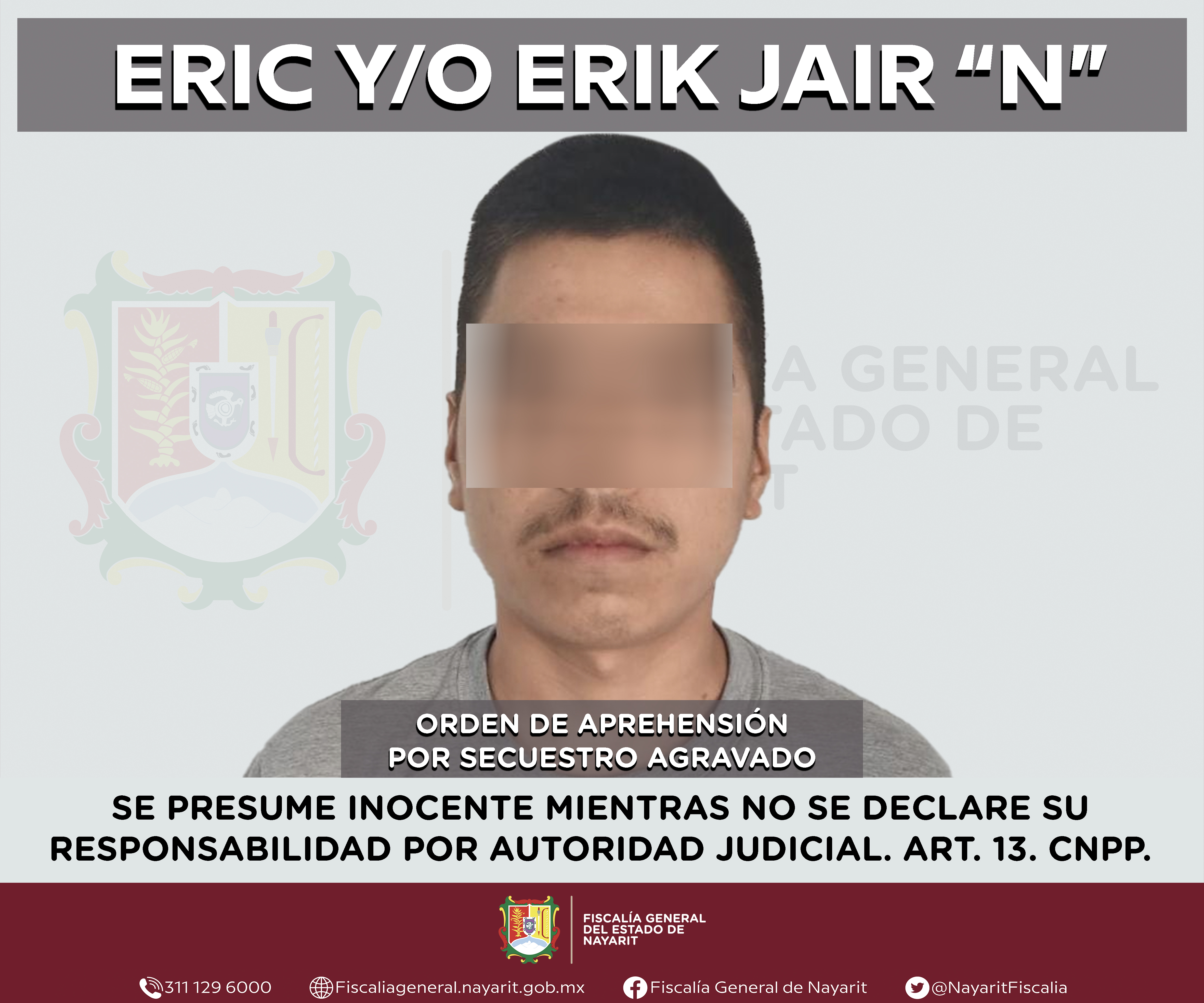 La Fiscalía General de Nayarit a través de la Agencia de Investigación Criminal ejecutó una orden de aprehensión en la ciudad de Tepic contra Abraham “N”, por su presunta participación en hechos que según apreciación de la ley encuadran el de...