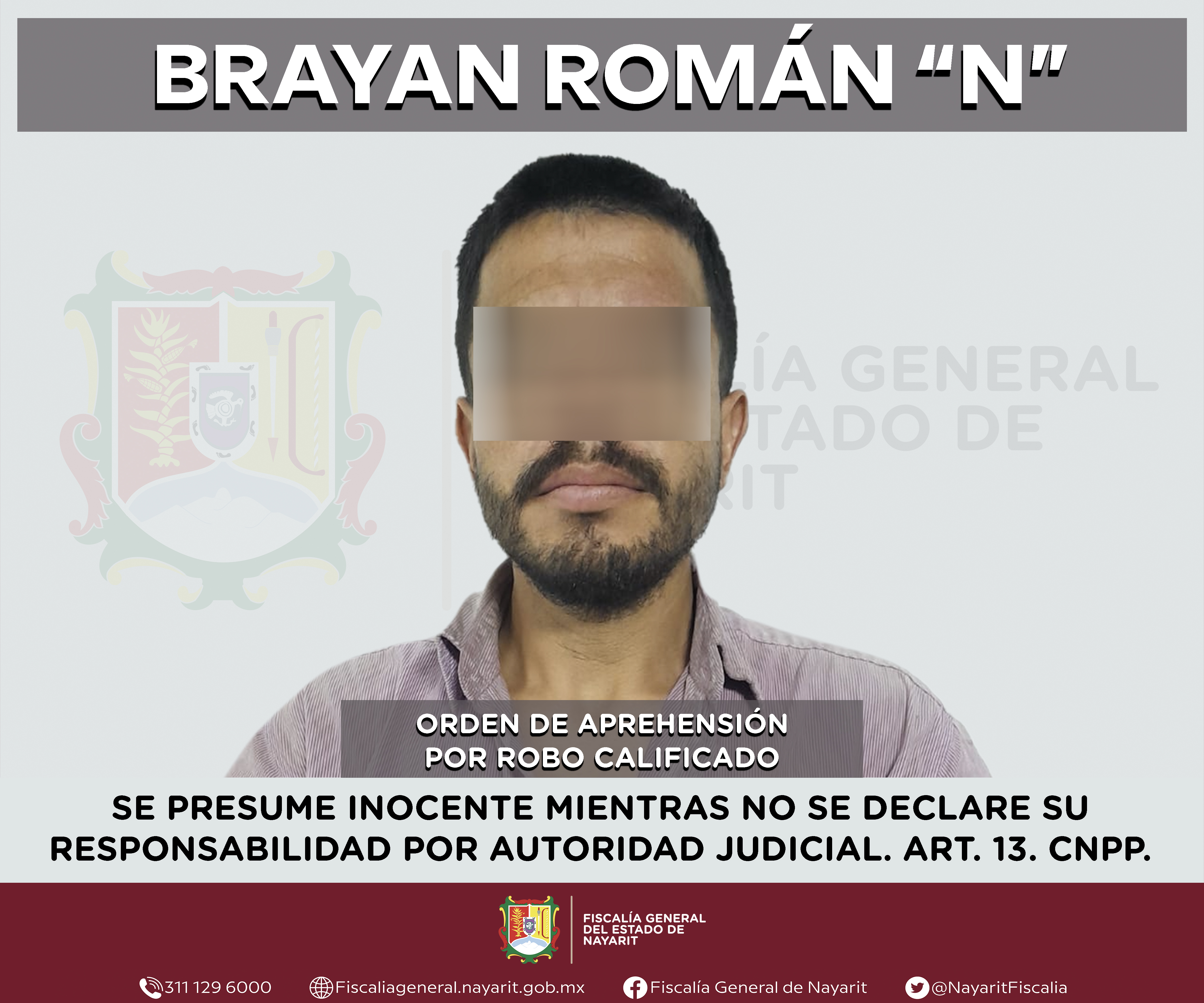 La Fiscalía General de Nayarit a través de la Agencia de Investigación Criminal ejecutó una orden de aprehensión en la ciudad de Tepic contra Brayan Román “N”, por su presunta participación en hechos que según apreciación de la ley encuadran...