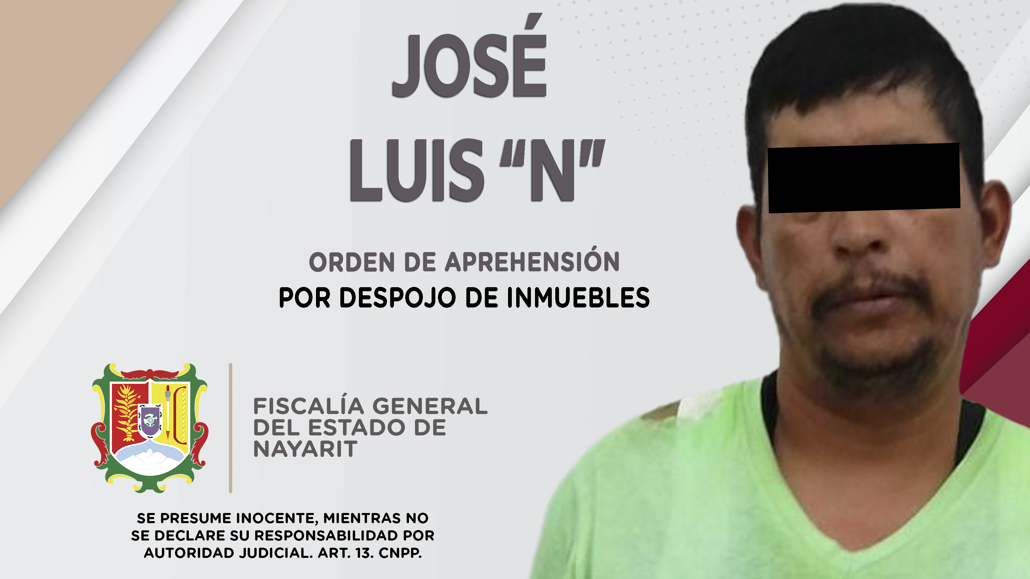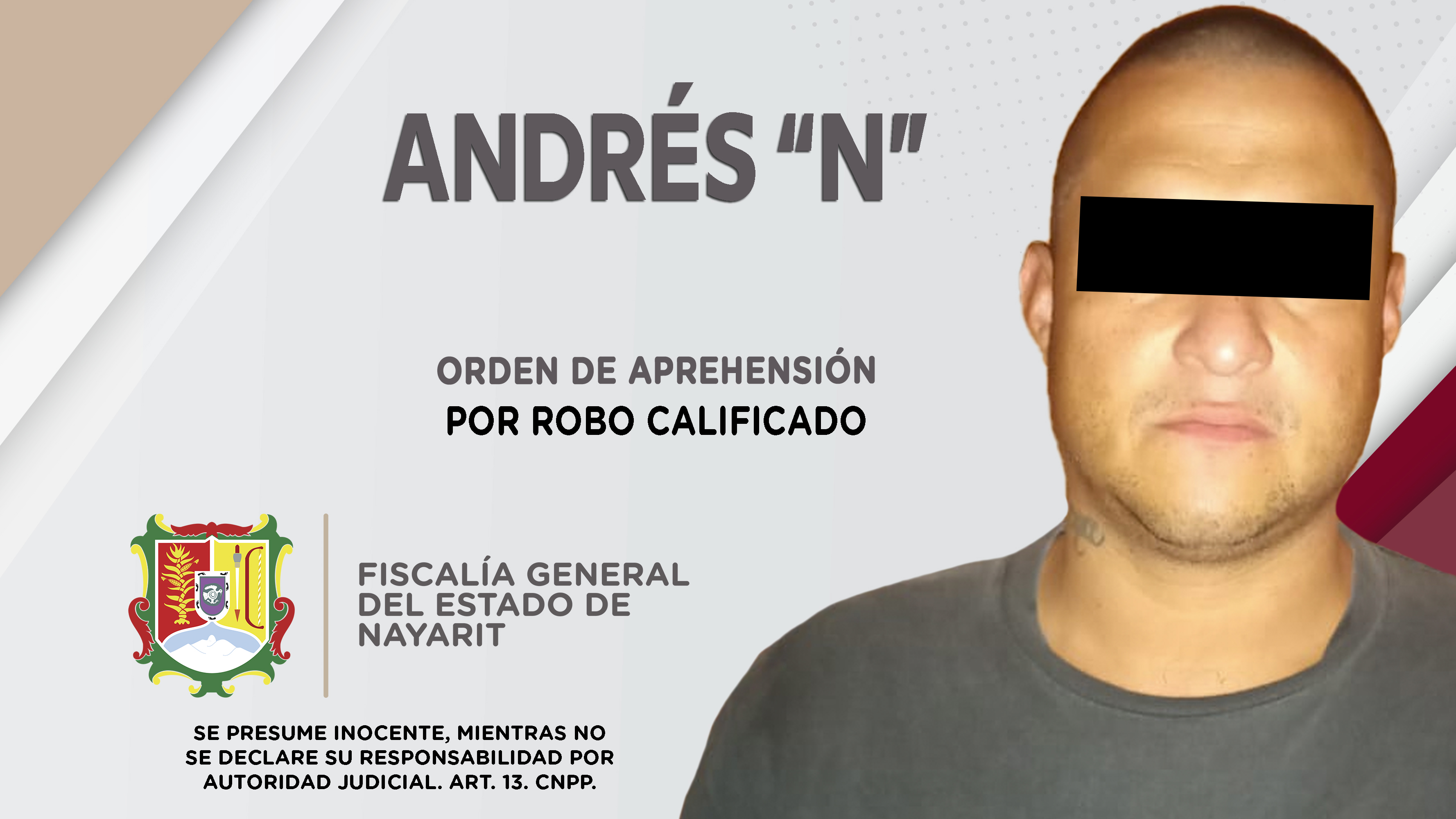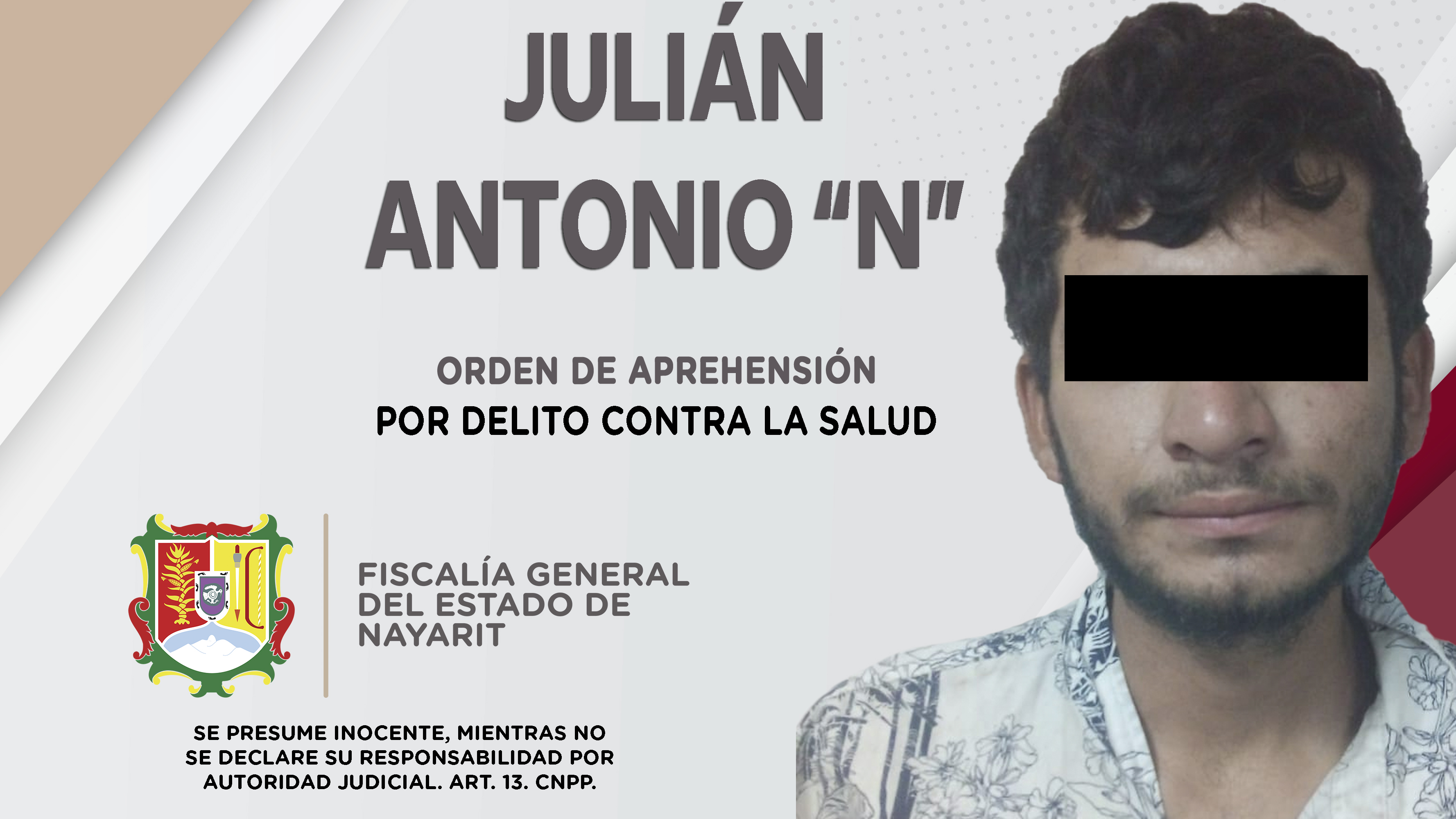 En el poblado Las Varas, municipio de Bahía de Banderas, personal de la Agencia de Investigación Criminal de Nayarit dio cumplimiento a una orden de aprehensión contra Andrés “N”, por su probable participación en hechos que para la ley constituy...