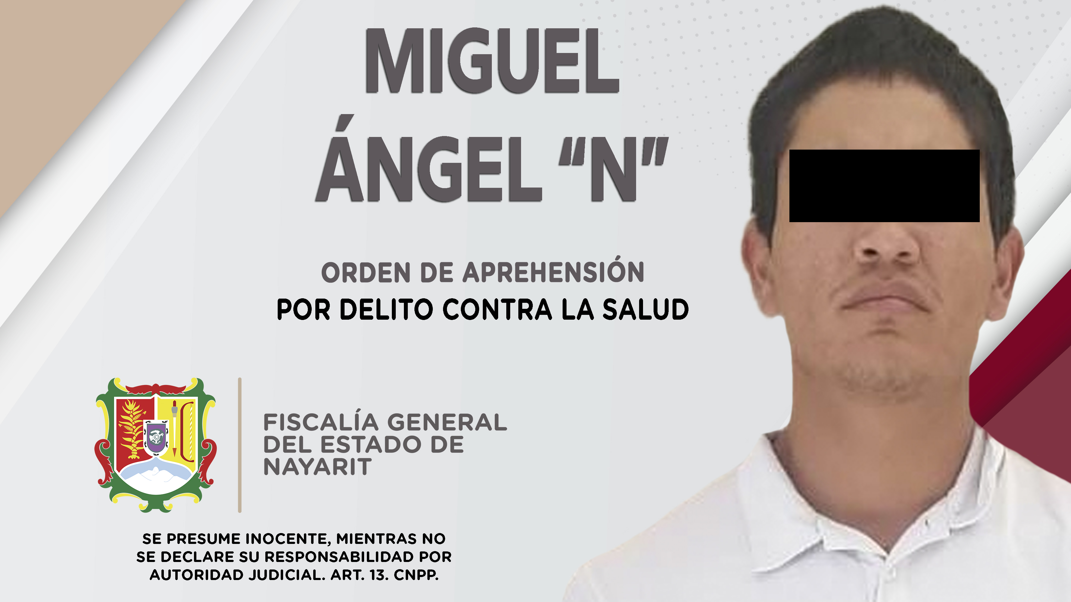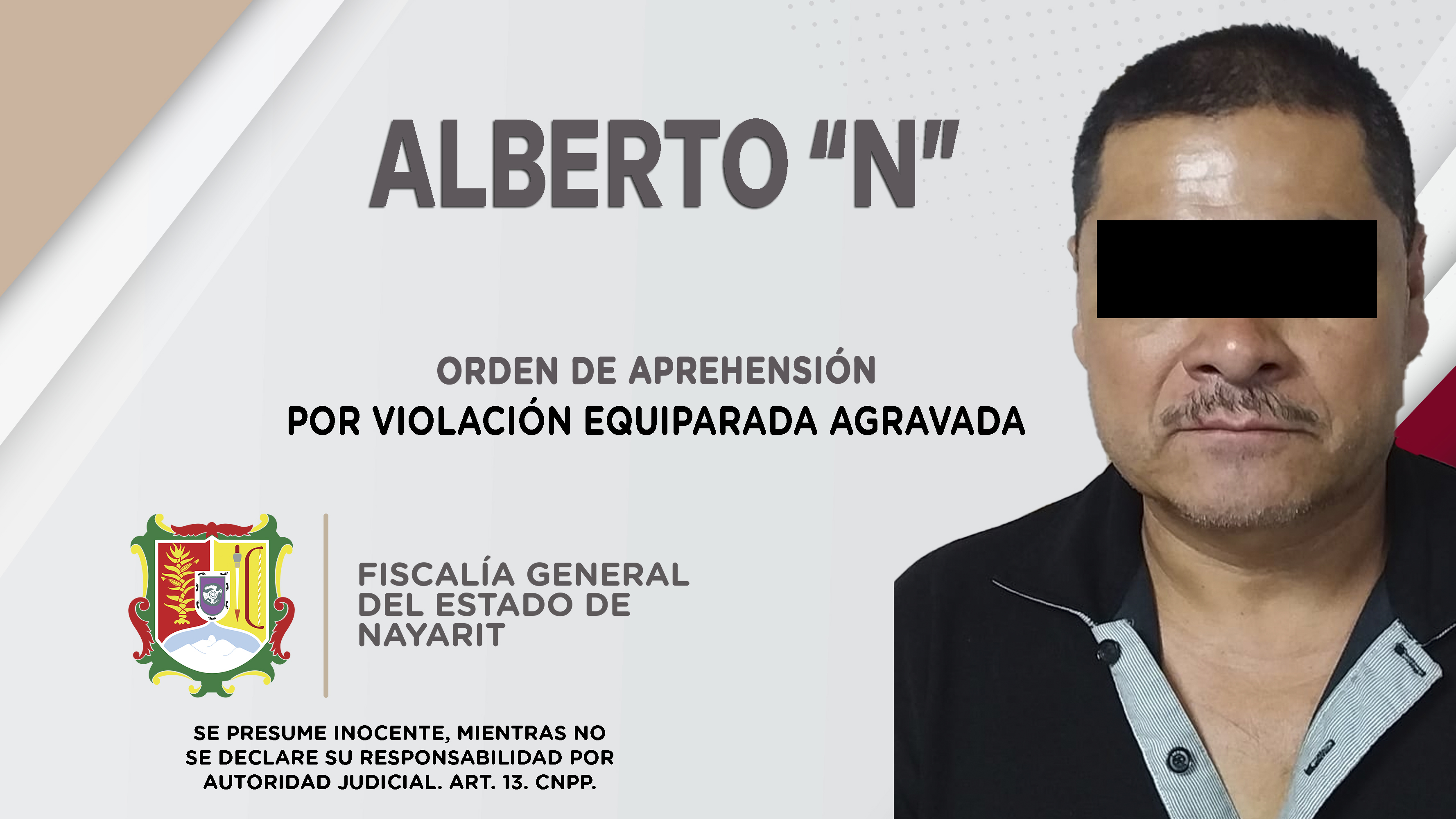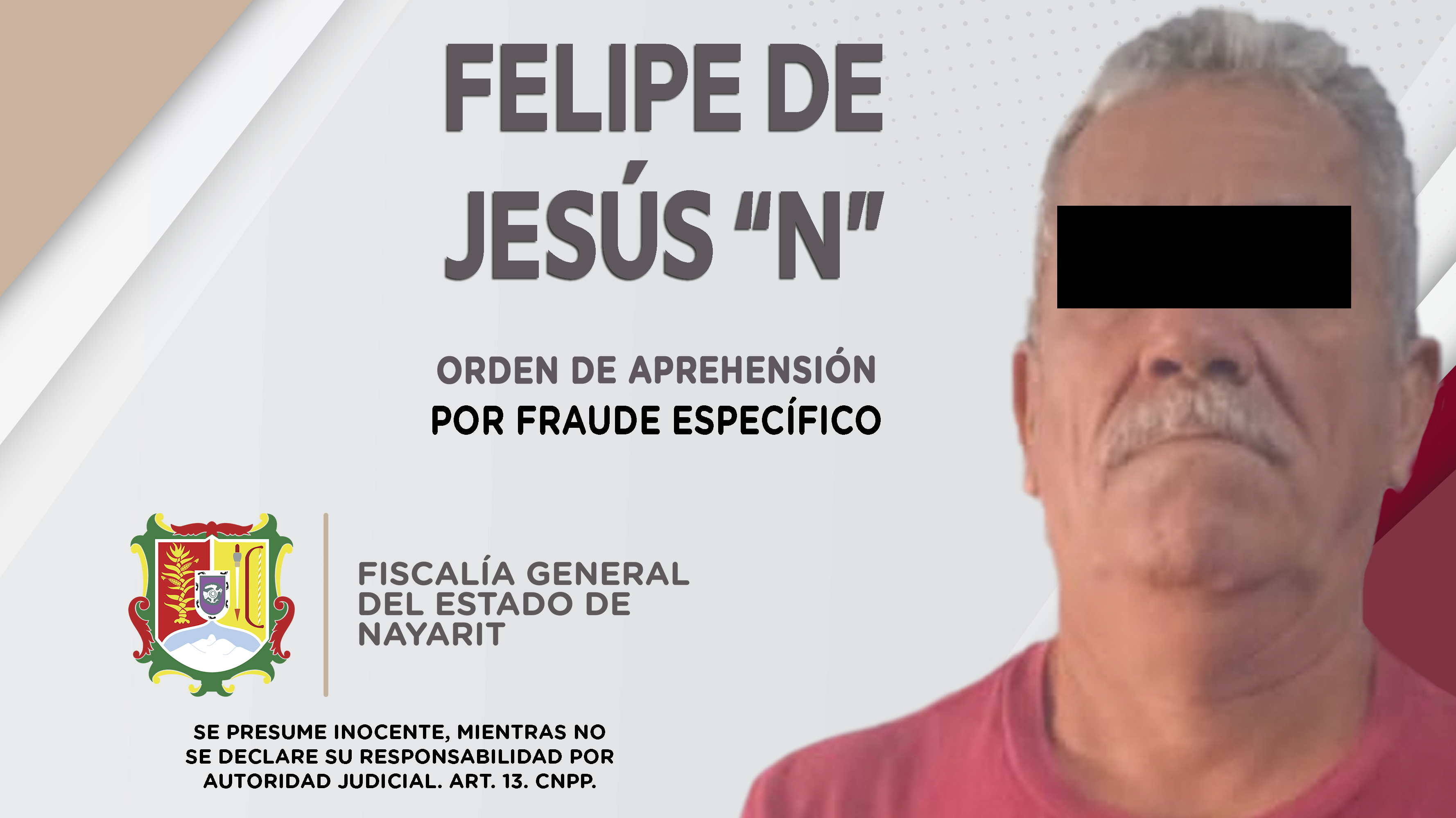 La Fiscalía General del estado de Nayarit, a través de personal de la Agencia de Investigación Criminal, dio cumplimiento a una orden de reaprehensión en el municipio de Xalisco, la cual se ejecutó contra Felipe de Jesús “N” por su probable par...