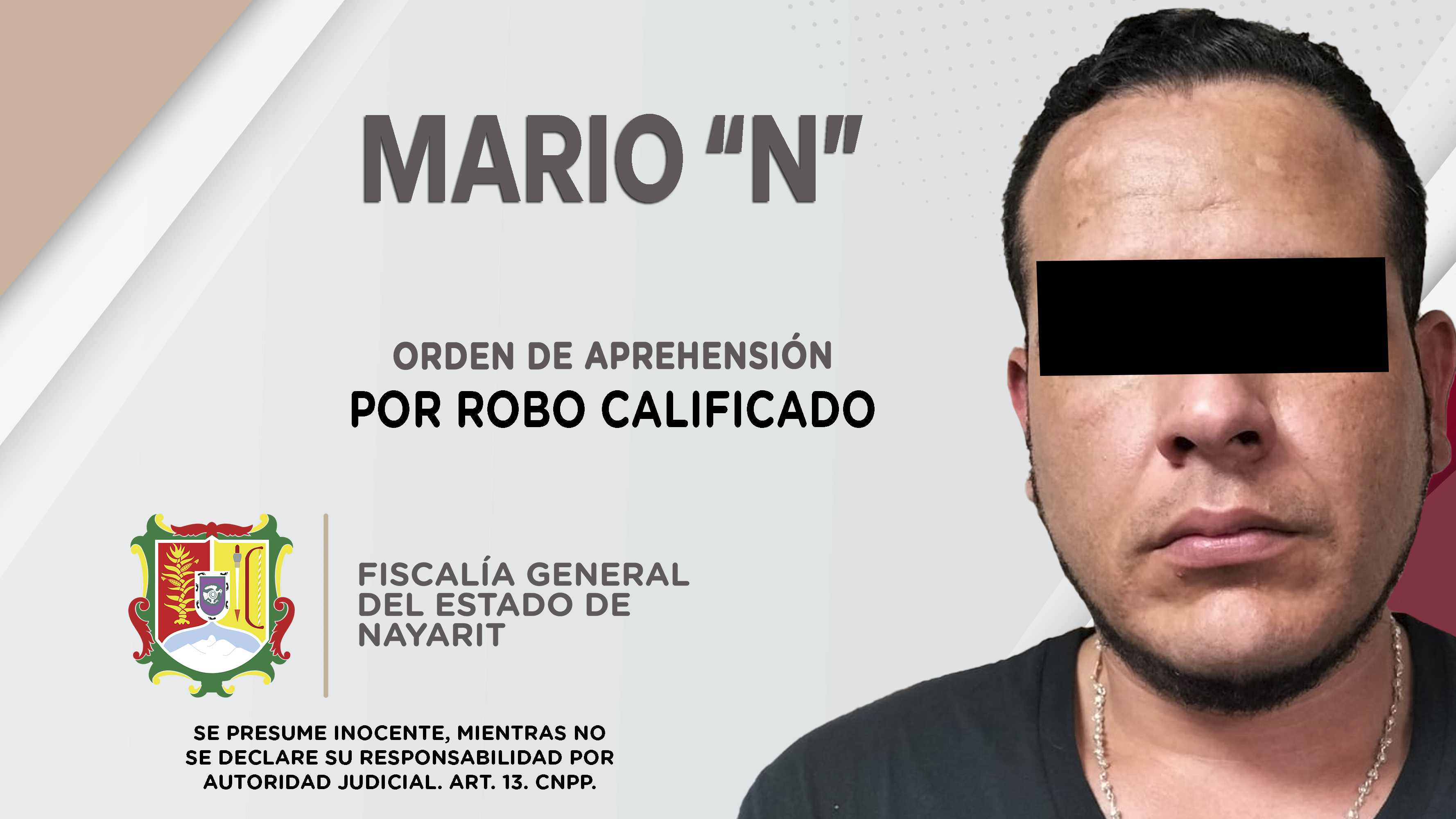 En colaboración con la Fiscalía General del estado de Chihuahua, elementos de la Agencia de Investigación Criminal ejecutaron una orden de aprehensión en el municipio de Compostela contra Misael “N”, por su presunta participación en hechos que s...