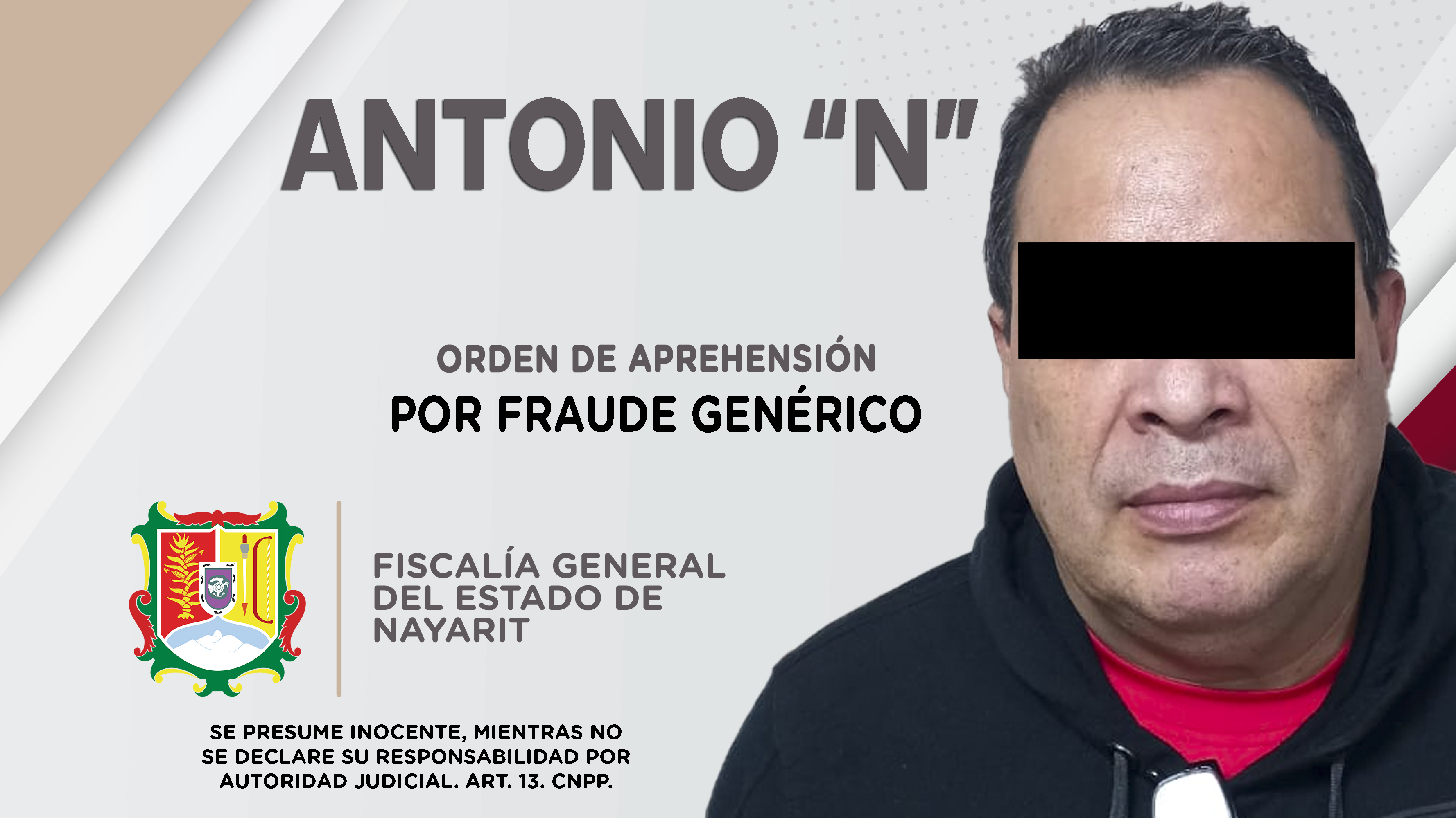 En el poblado San Cayetano, municipio de Tepic, elementos de la Agencia de Investigación Criminal cumplimentaron una orden de aprehensión contra Alberto “N”, como presunto responsable del delito de abandono de familiares, cometido en agravio de un ...