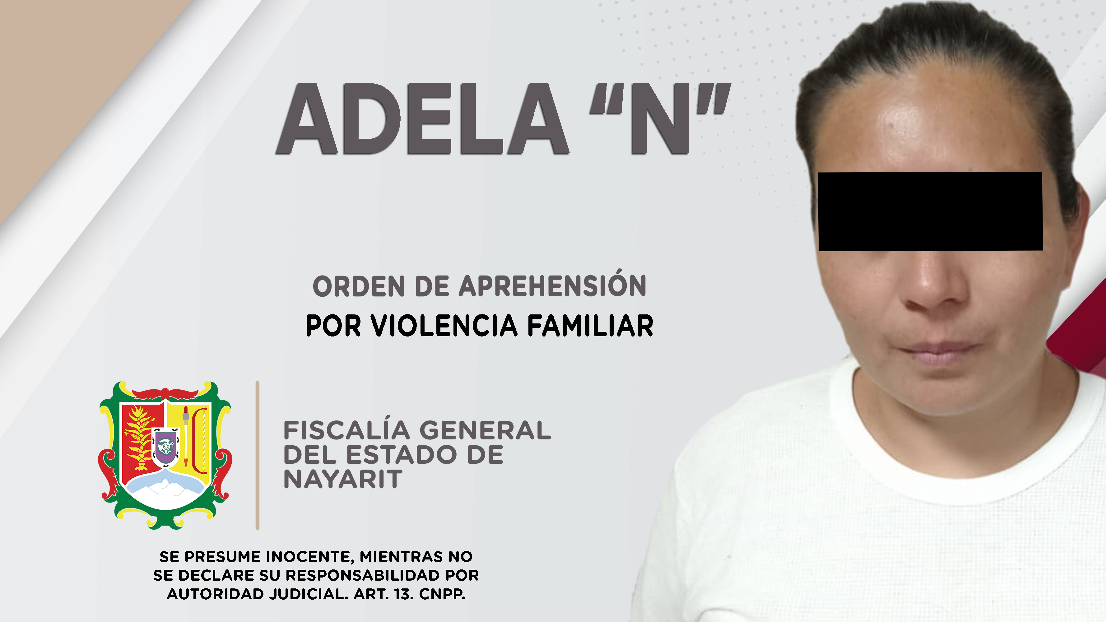En el poblado San Cayetano, municipio de Tepic, elementos de la Agencia de Investigación Criminal cumplimentaron una orden de aprehensión contra Candy “N”, de quien se presume su responsabilidad en hechos que revisten las características del delit...