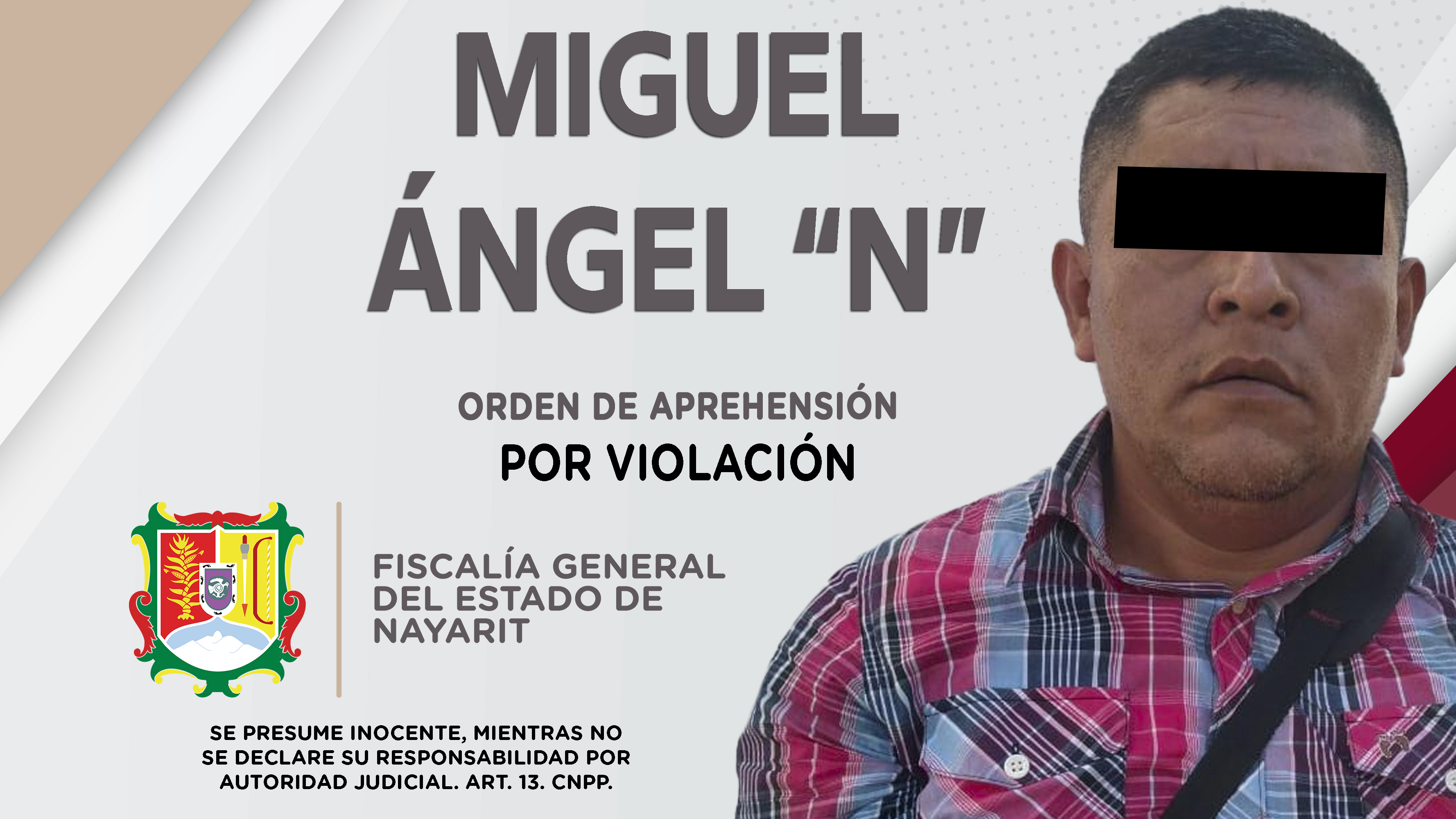 Fiscalía General de Nayarit a través de la Agencia de Investigación Criminal, dio cumplimiento a una orden de aprehensión contra Marcos Ramón “N”, porque se presume su responsabilidad en hechos que para la ley configuran el delito de robo califi...