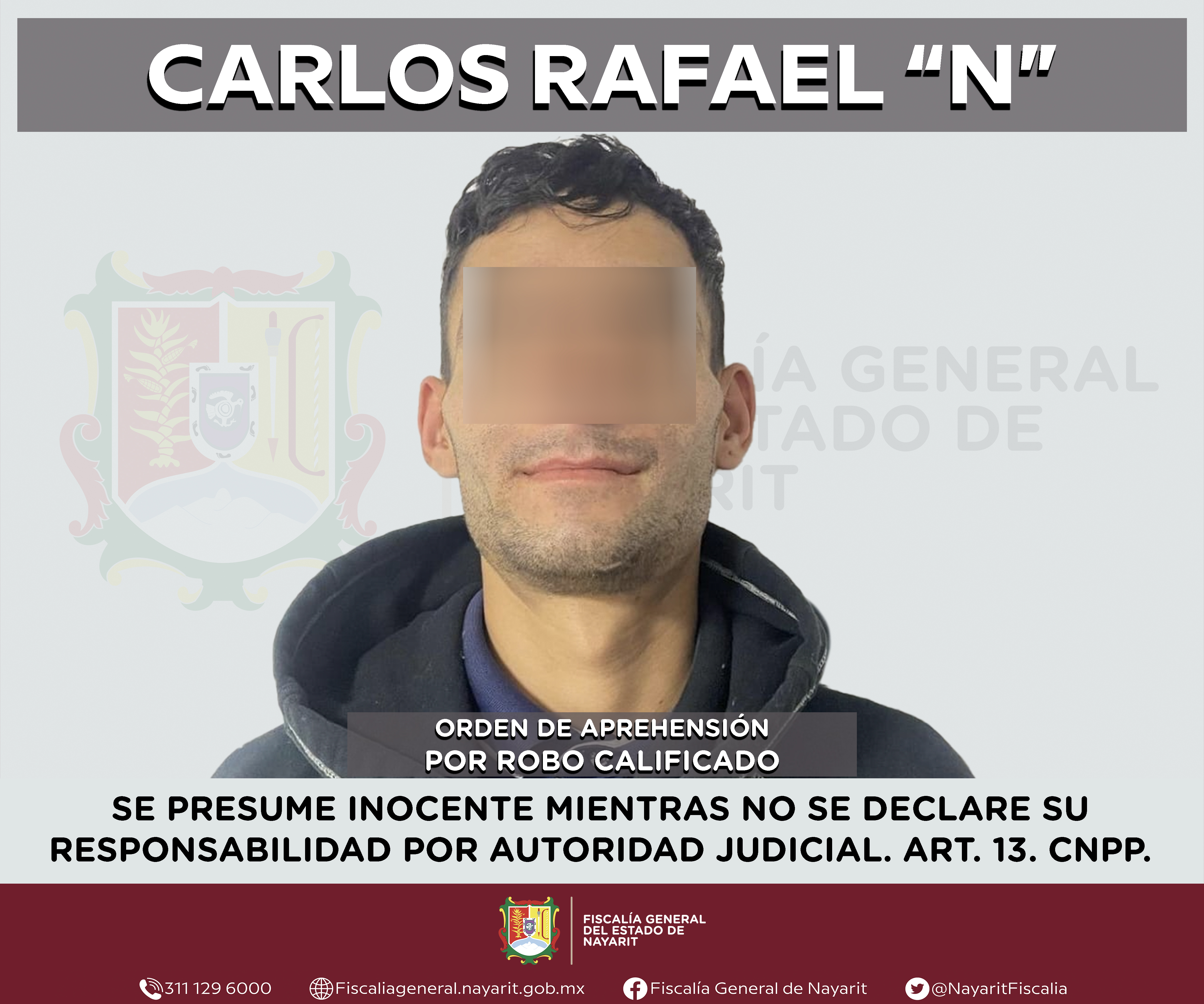 La Fiscalía General de Nayarit a través de la Agencia de Investigación Criminal ejecutó una orden de aprehensión en la capital nayarita contra Carlos Rafael “N”, por su probable participación en hechos que para la ley configuran el delito de ro...