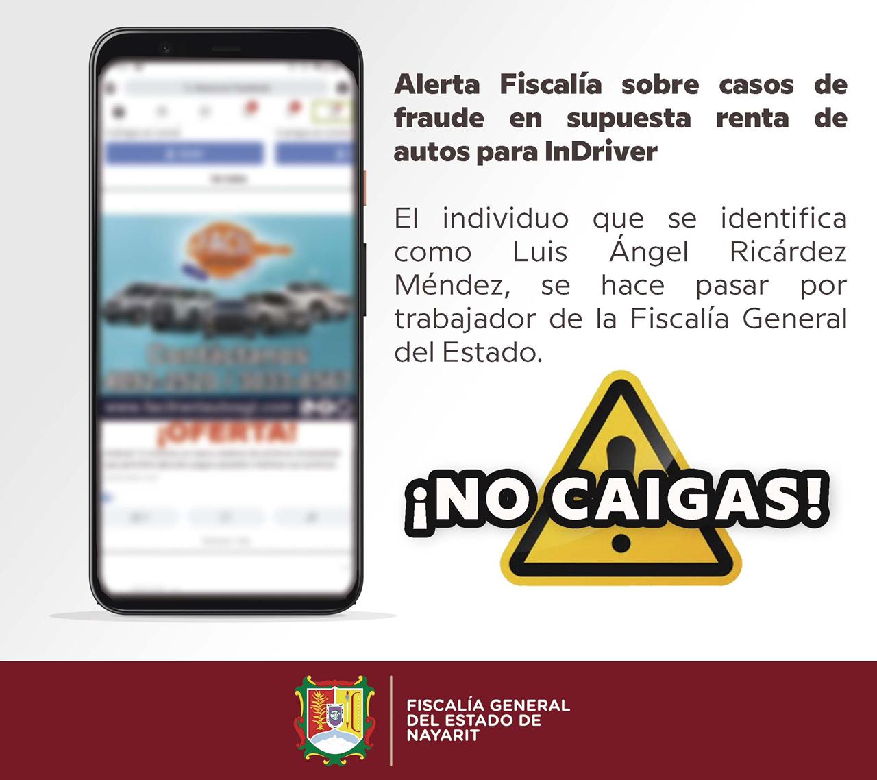 Tepic, Nayarit; sábado 19 de febrero de 2022.- Fiscalía General del Estado hace un llamado a la sociedad en general, para estar alerta sobre un método fraudulento utilizado por un individuo que se identifica como Luis Ángel Ricárdez Méndez, quien a...