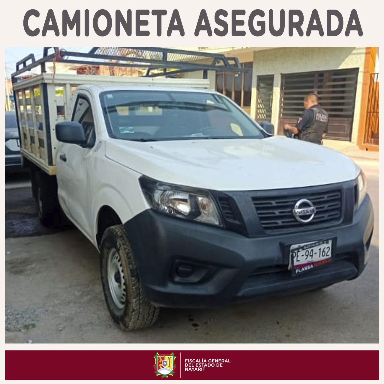 Elementos de la Agencia de Investigación Criminal adscritos a la Comandancia del municipio de Compostela aseguraron una camioneta, la cual se encuentra relacionada en una carpeta de investigación por el delito de robo calificado. \r\n\r\nSe informa que...