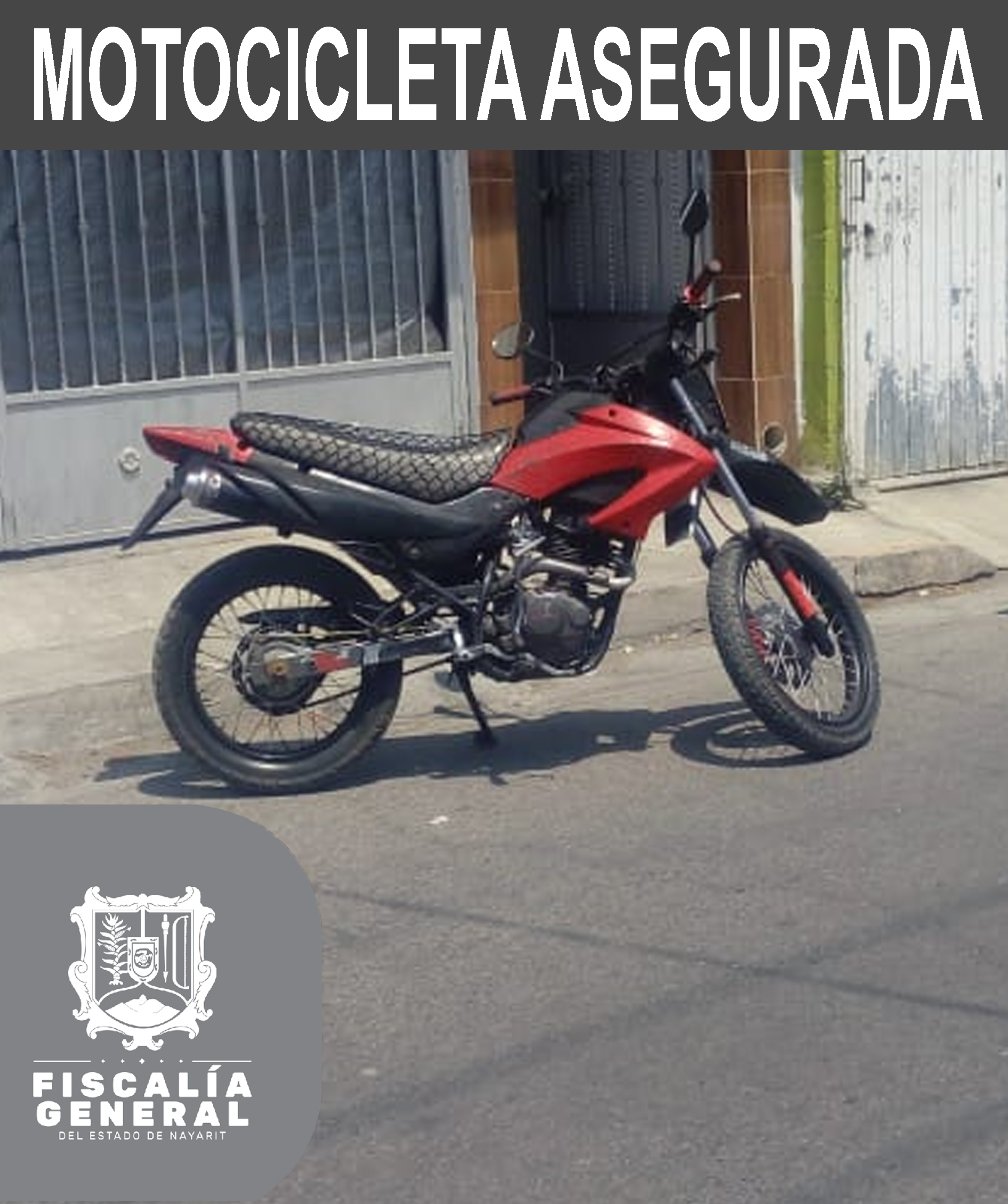 Personal de la División de Robo de Vehículos aseguró una motocicleta con número de motor esmerilado, la cual se encontraba estacionada sobre la calle Miguel Lebrija de la colonia Lázaro Cárdenas de la ciudad de Tepic. La unidad en mención es de la...