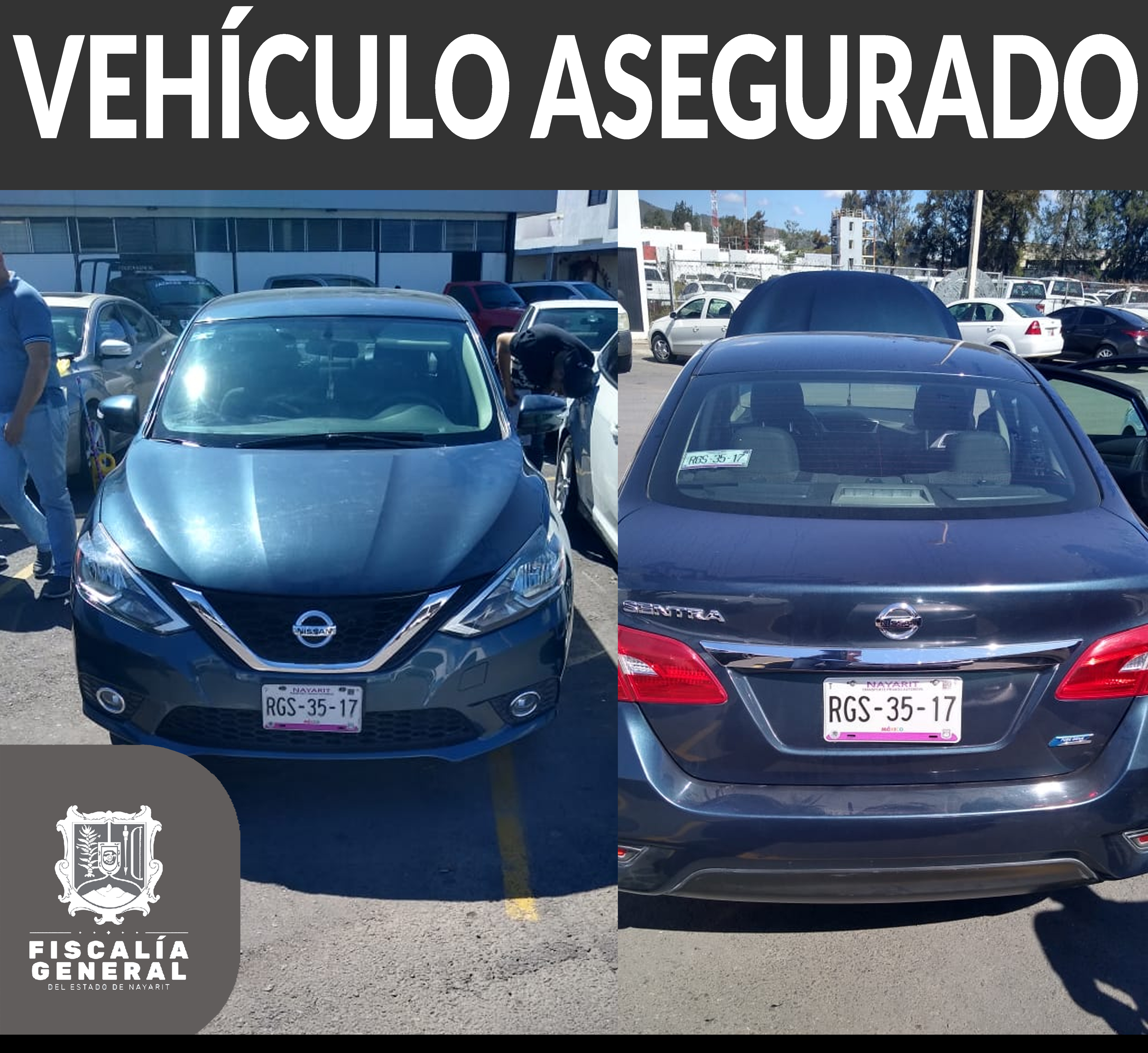 Personal de la Unidad de Robo de Vehículos aseguró un automóvil, mismo que presenta una alteración en el número de serie, siendo dicha unidad de la marca Nissan, tipo Sentra, modelo 2017, color azul, con placas de circulación RGS-35-17 del estado d...