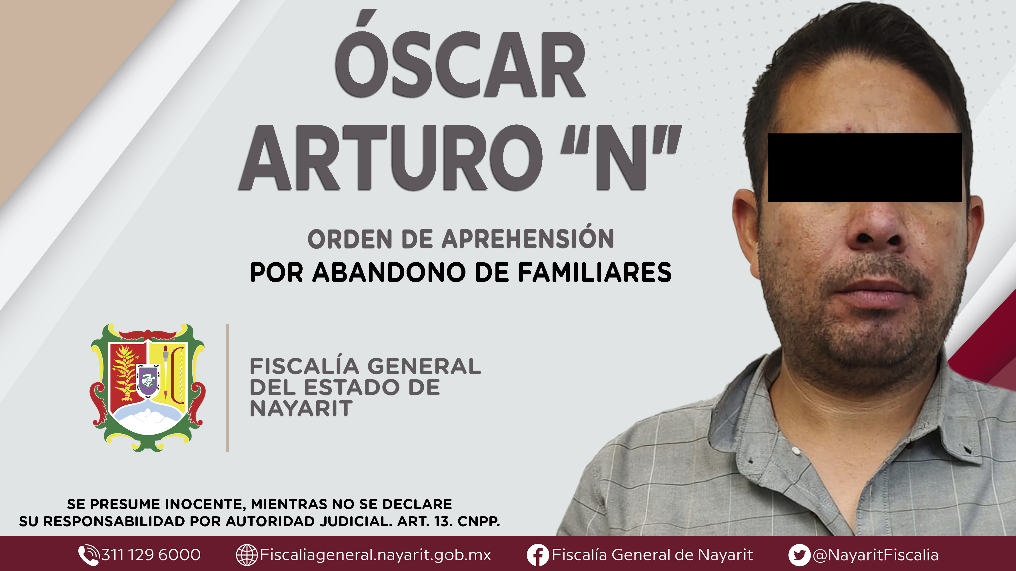 La Fiscalía General del Estado a través de la Agencia de Investigación Criminal dio cumplimiento a una orden de aprehensión en la ciudad de Tepic contra Óscar Arturo “N”, quien es originario y vecino de la capital nayarita, por su presunta parti...