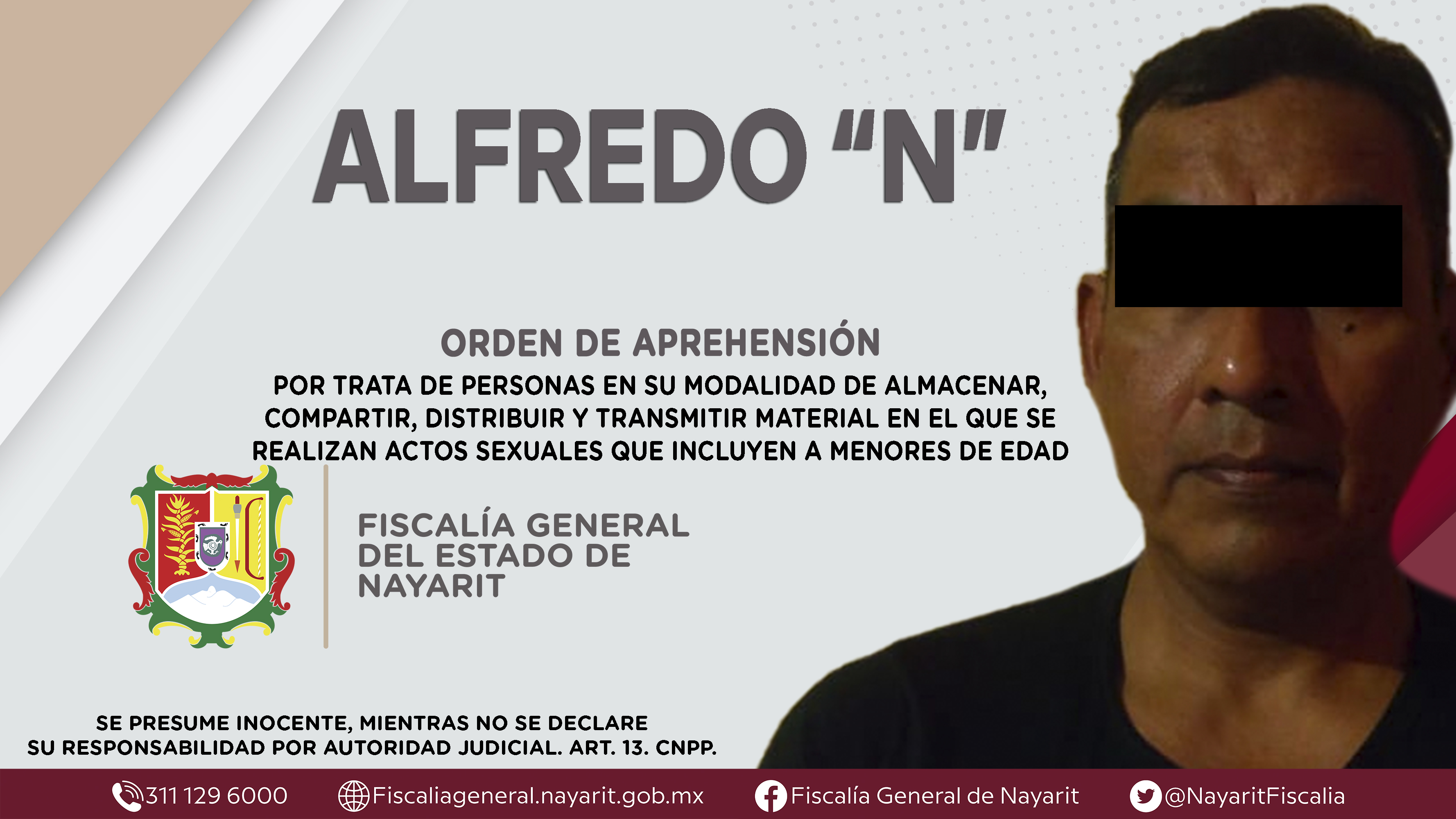 Elementos de la Agencia de Investigación Criminal dieron cumplimiento a una orden de aprehensión en la localidad Las Varas, municipio de Compostela contra Alfredo “N”, quien es originario y vecino del lugar donde fue detenido, por su presunta parti...