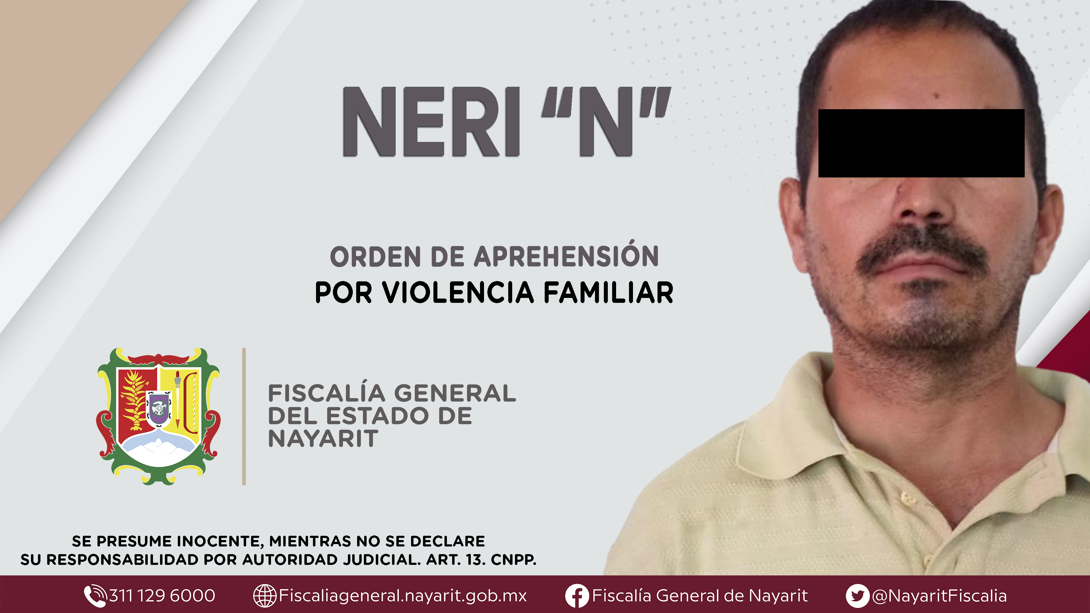 La Fiscalía General del Estado a través de la Agencia de Investigación Criminal dio cumplimiento a una orden de aprehensión en el municipio de Ruiz contra Neri “N”, por su presunta participación en hechos que bajo la apreciación de la ley confi...