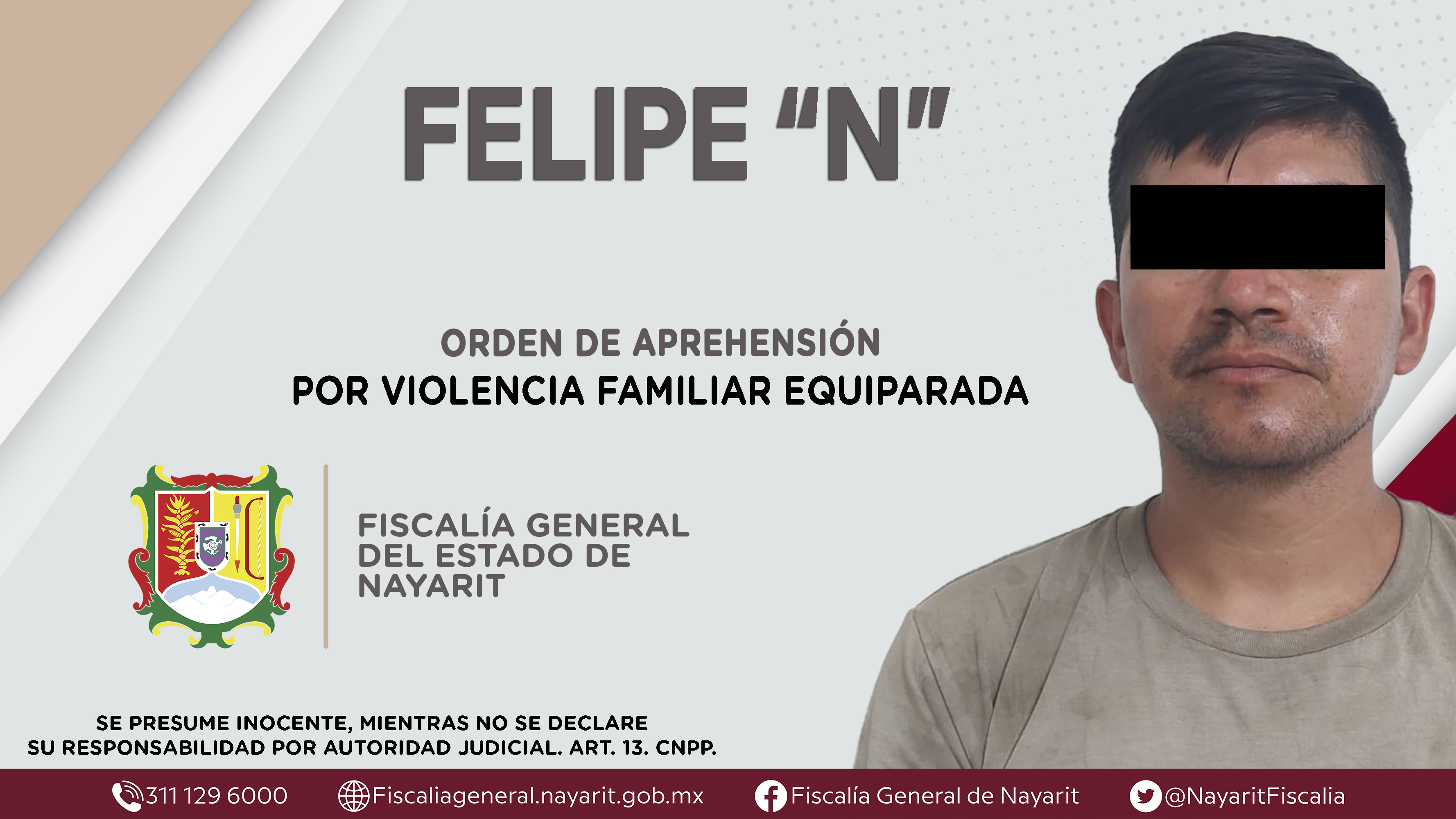 La Fiscalía General del Estado a través de la Agencia de Investigación Criminal dio cumplimiento a una orden de aprehensión en la capital nayarita contra Felipe “N”, por su presunta participación en hechos que bajo la apreciación de la ley conf...