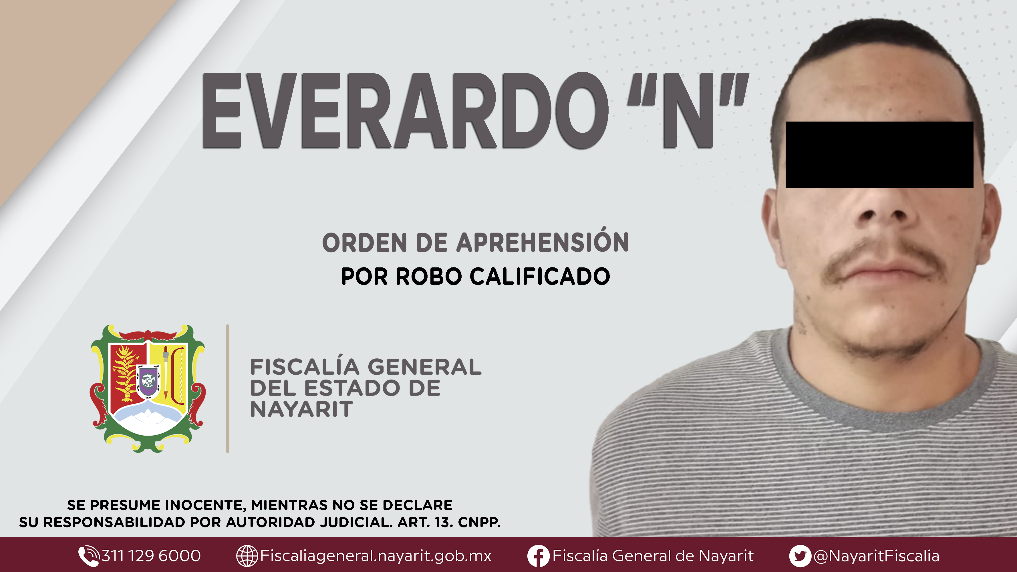 La Fiscalía General del Estado a través de la Agencia de Investigación Criminal cumplimentó una orden de aprehensión en el municipio de Compostela contra Everardo “N”, por su presunta participación en hechos que bajo la apreciación de la ley c...