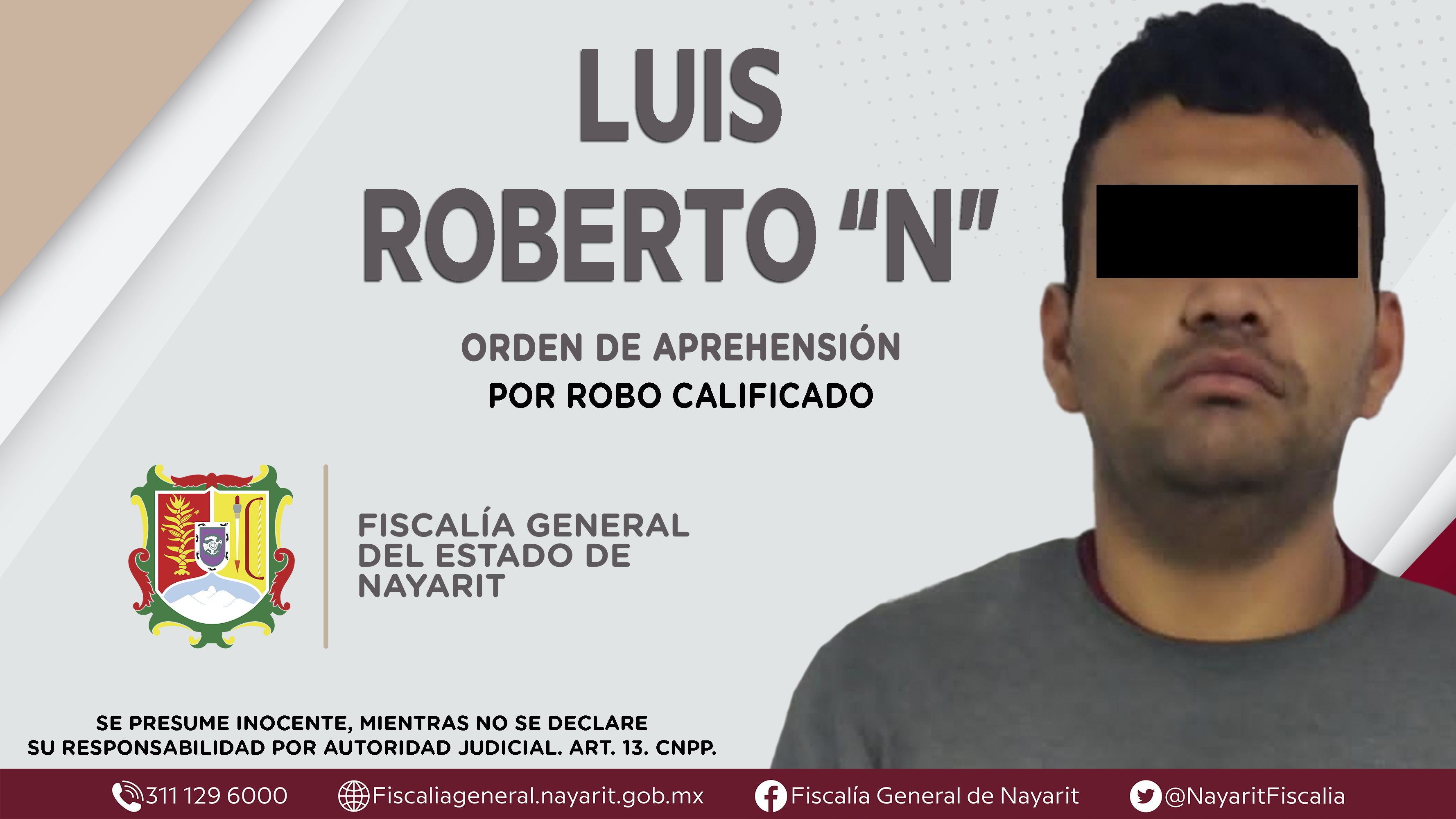 La Fiscalía General del Estado a través de la Agencia de Investigación Criminal cumplimentó una orden de aprehensión en la ciudad de Tepic contra Luis Roberto “N”, por su presunta participación en hechos que según apreciación de la ley encuad...