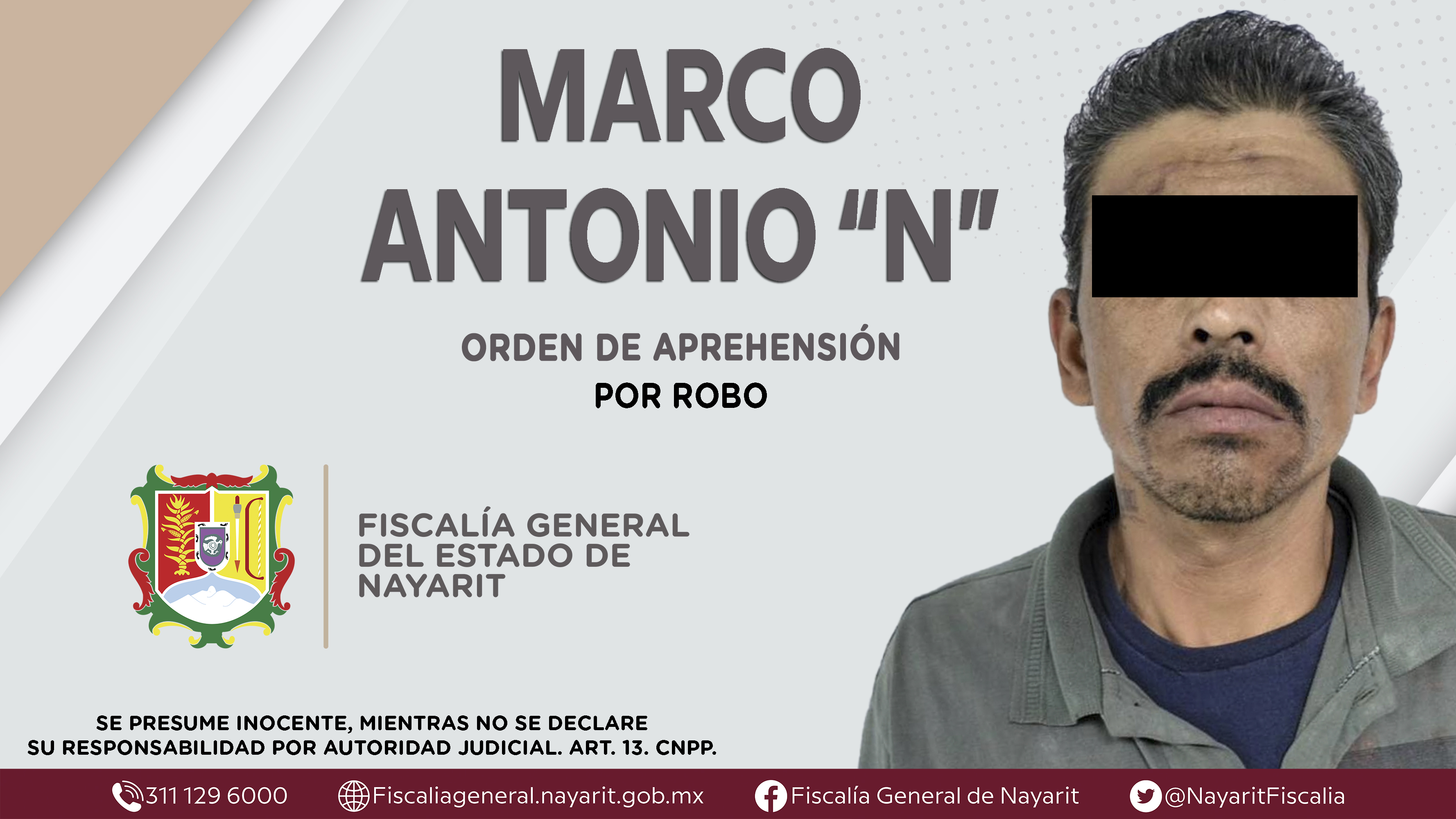 La Fiscalía General del Estado a través de la Agencia de Investigación Criminal cumplimentó una orden de aprehensión en la ciudad de Tepic contra Marco Antonio “N”, por su presunta participación en hechos que bajo apreciación de la ley configu...