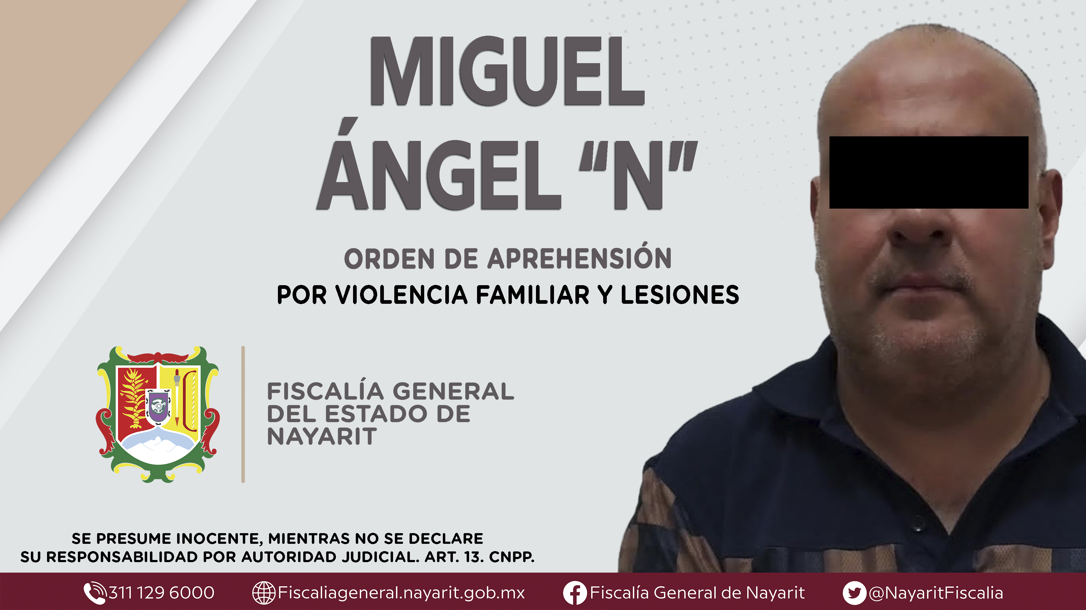 La Fiscalía General del Estado a través de la Agencia de Investigación Criminal cumplimentó una orden de aprehensión en la ciudad de Tepic contra Miguel Ángel “N”, por su presunta participación en hechos que bajo apreciación de la ley configu...