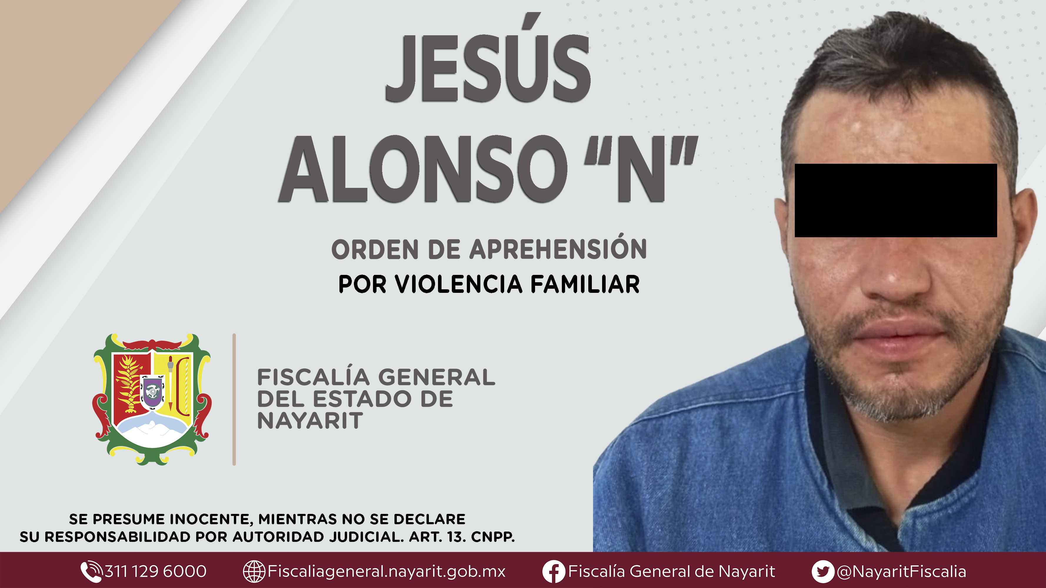La Fiscalía General del Estado a través de la Agencia de Investigación Criminal cumplimentó una orden de aprehensión en la ciudad de Tepic contra Jesús Alonso “N”, por su presunta participación en hechos que bajo apreciación de la ley configu...