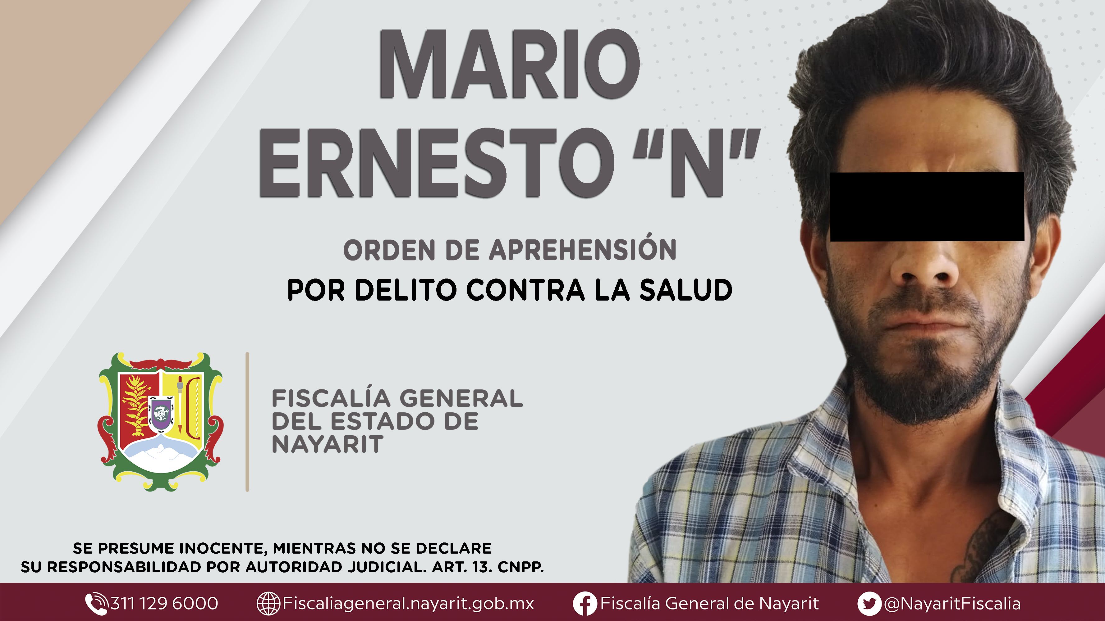 La Fiscalía General de Nayarit a través de la Agencia de Investigación Criminal dio cumplimiento a una orden de aprehensión contra Mario Ernesto “N”, por su presunta participación en hechos que según apreciación de la ley encuadran el delito c...