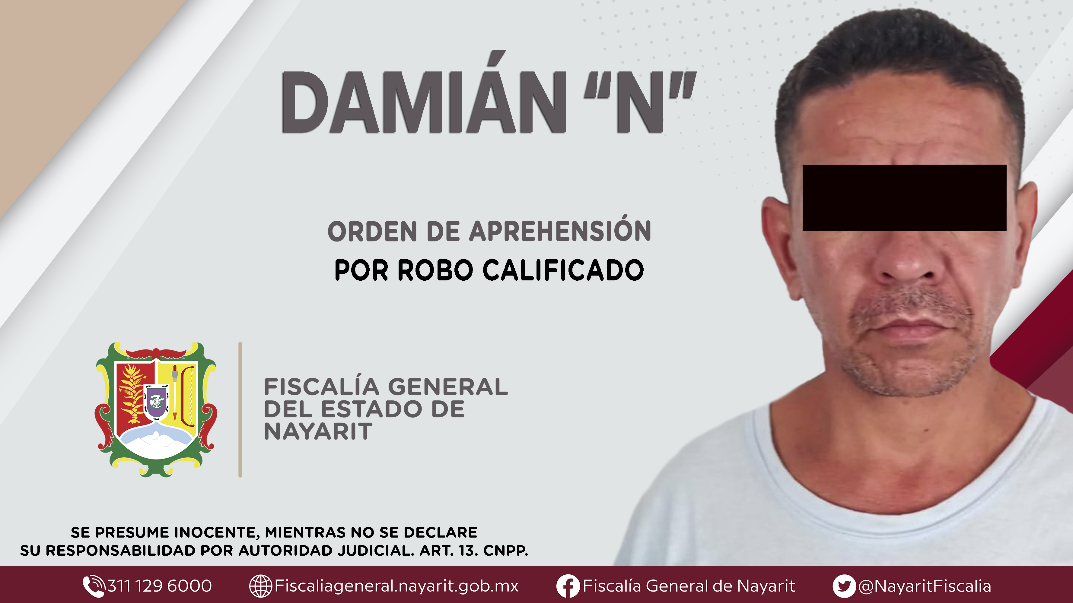 La Fiscalía General de Nayarit a través de la Agencia de Investigación Criminal ejecutó dos órdenes de aprehensión en la capital nayarita contra Damián “N”, por su presunta participación en hechos que según apreciación de la ley encuadran e...