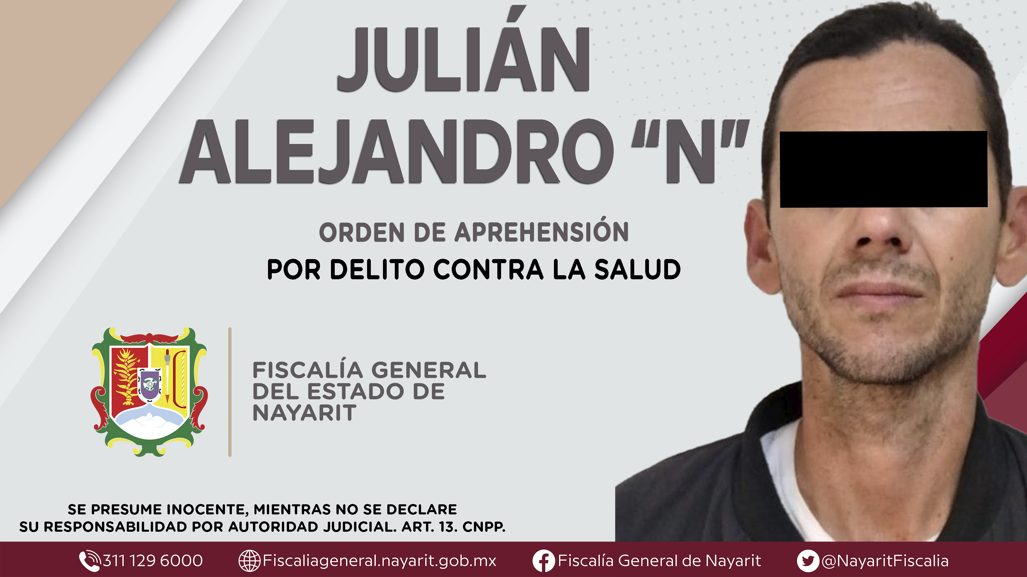 Elementos de la Agencia de Investigación Criminal dieron cumplimiento a una orden de aprehensión en la ciudad de Tepic contra Julián Alejandro “N”, por su presunta participación en hechos que según apreciación de la ley encuadran el delito cont...