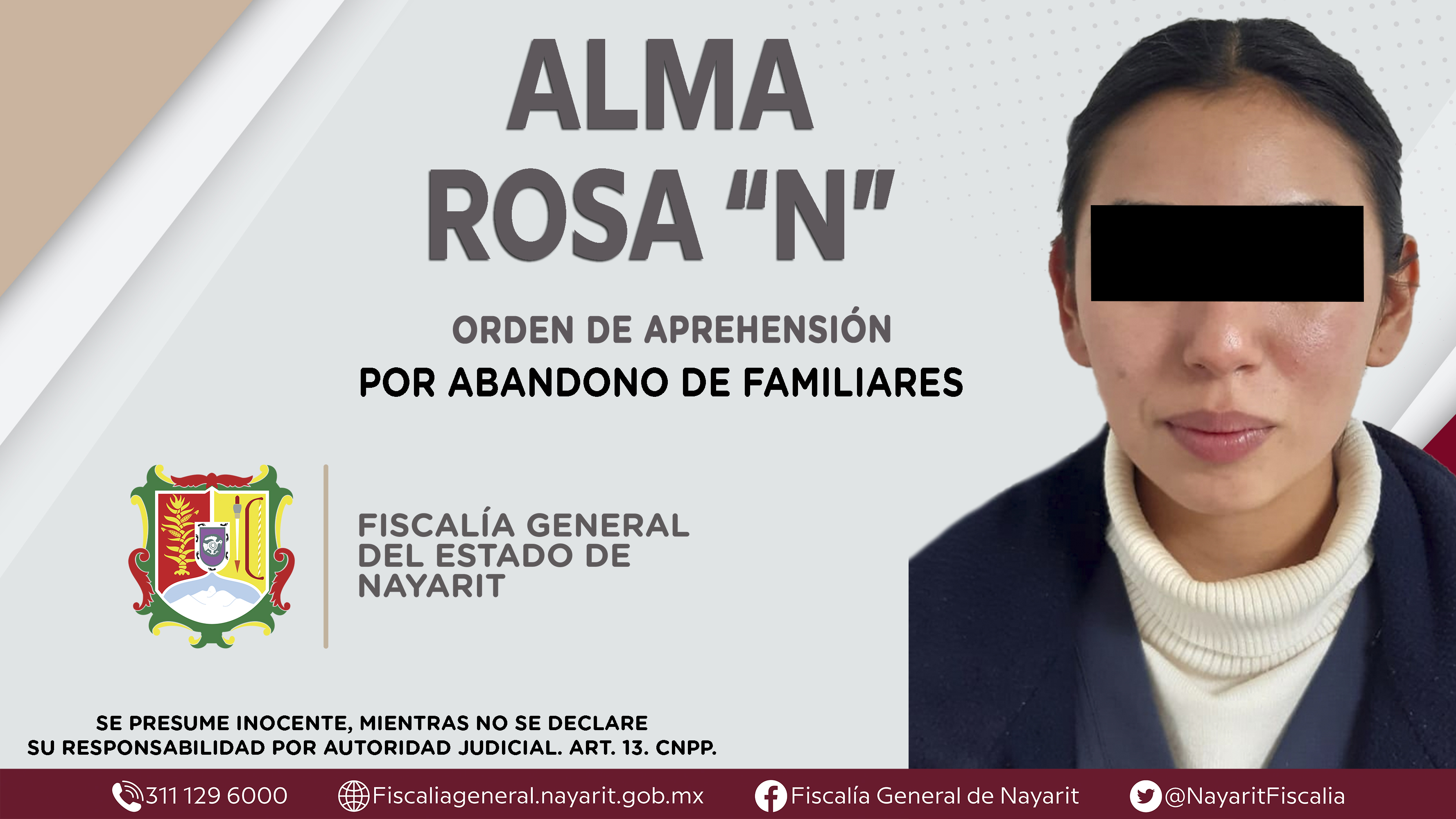 La Fiscalía General del Estado a través de la Agencia de Investigación Criminal cumplimentó una orden de aprehensión en la capital nayarita contra Alma Rosa “N”, por su presunta participación en hechos que bajo la apreciación de la ley config...