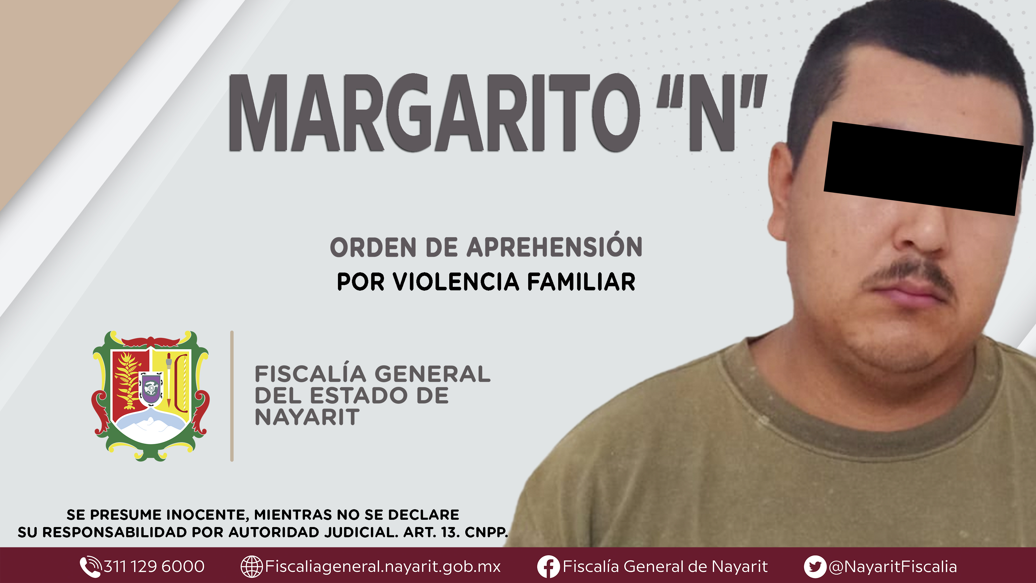 La Fiscalía General del Estado a través de la Agencia de Investigación Criminal cumplimentó una orden de aprehensión en el municipio de Tecuala contra Margarito “N”, por su presunta participación en hechos que bajo apreciación de la ley config...