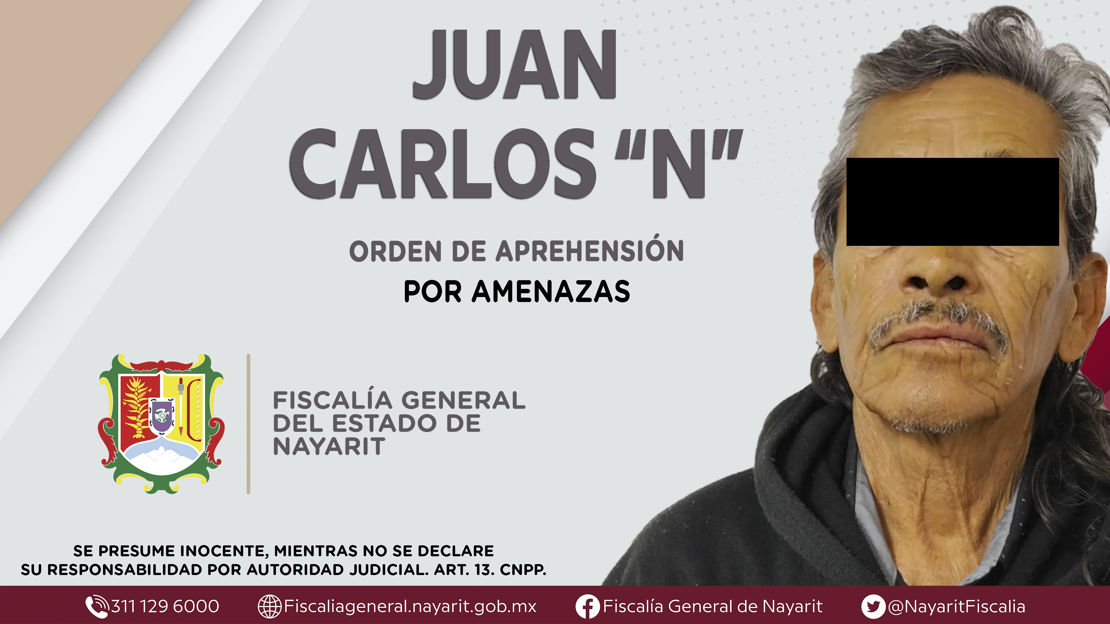 Elementos de la Agencia de Investigación Criminal dieron cumplimiento a una orden de aprehensión en la capital nayarita contra Juan Carlos “N”, por su presunta participación en hechos que bajo la apreciación de la ley configuran el delito de amen...