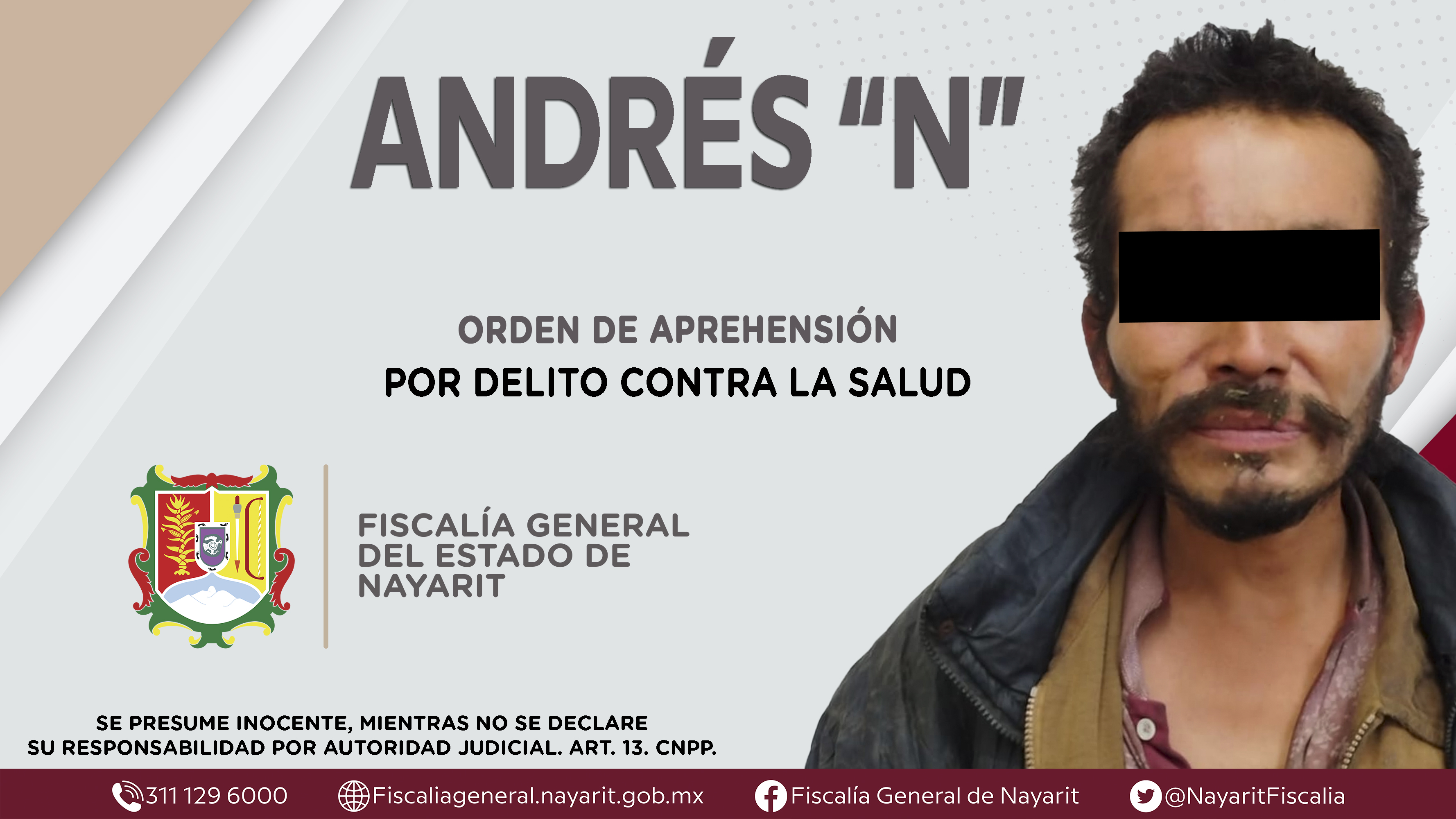 Elementos de la Agencia de Investigación Criminal dieron cumplimiento a una orden de aprehensión en la ciudad de Tepic contra Andrés “N”, por su presunta participación en hechos que bajo la apreciación de la ley configuran el delito contra la sa...