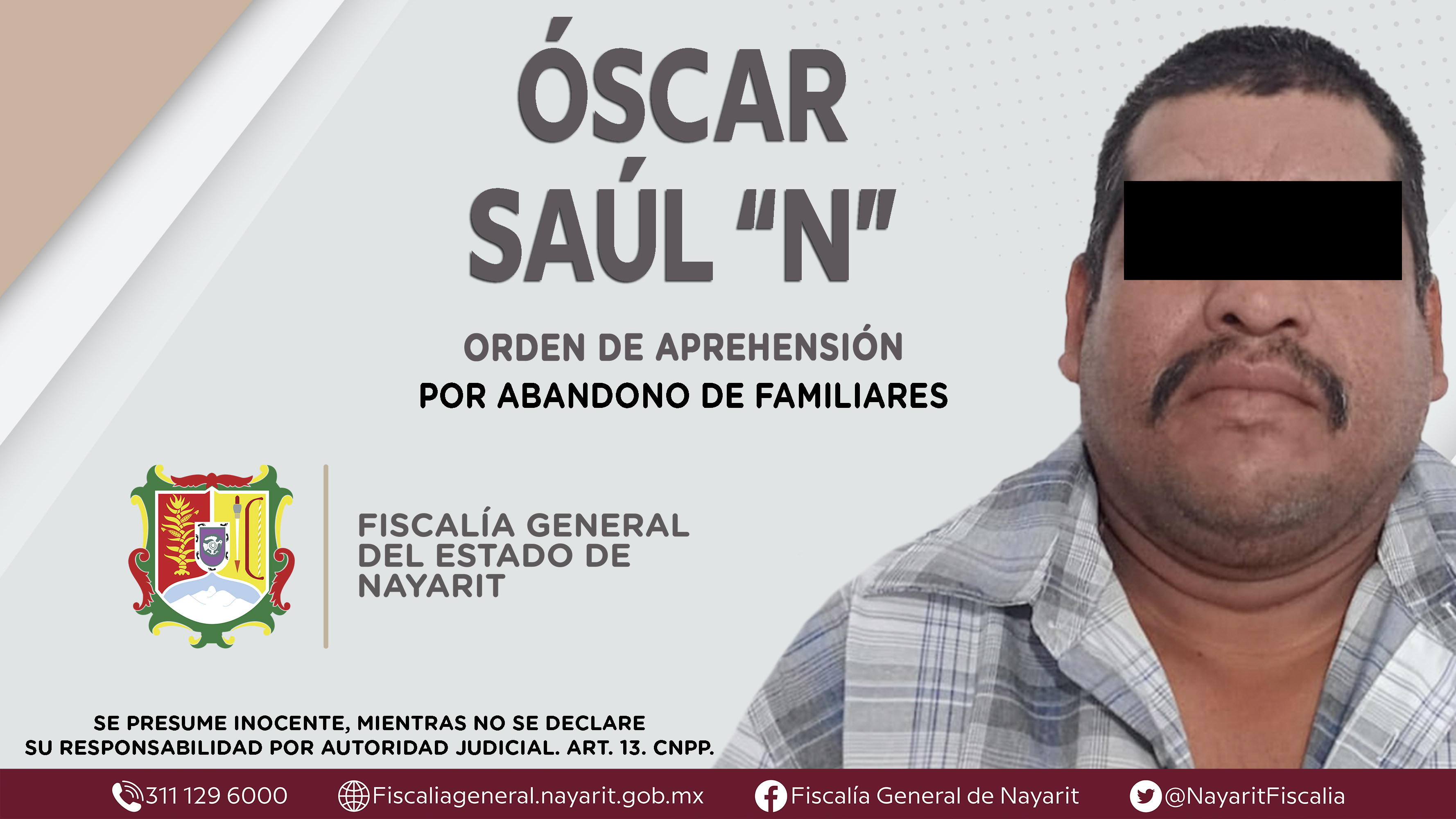 La Fiscalía General del Estado a través de la Agencia de Investigación Criminal dio cumplimiento a una orden de aprehensión en el municipio de Santiago Ixcuintla contra Óscar Saúl “N”, por su presunta participación en hechos que según aprecia...