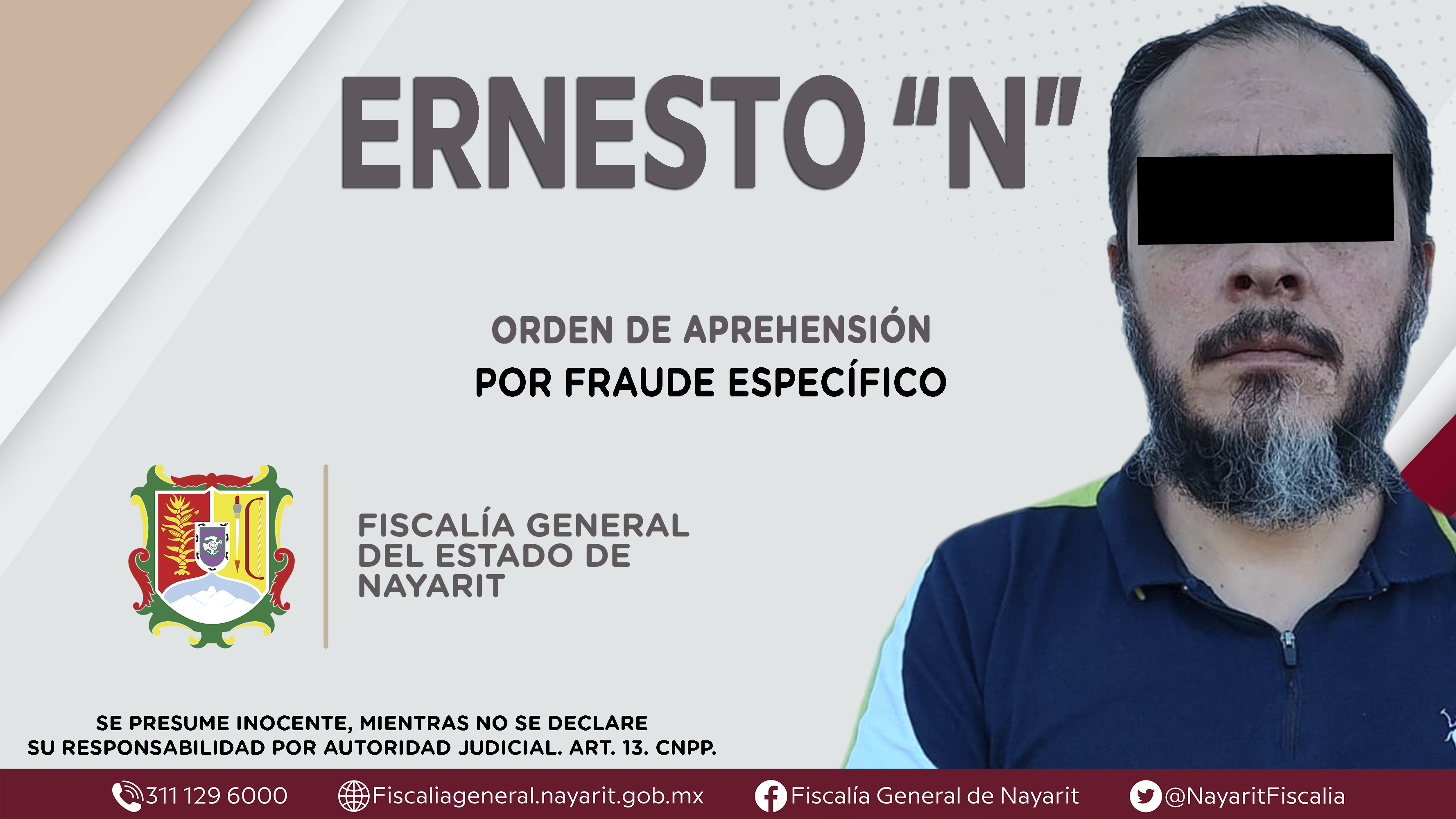 Elementos de la Agencia de Investigación Criminal dieron cumplimiento a una orden de aprehensión en la ciudad de Tepic contra Ernesto “N”, por su presunta participación en hechos que bajo la apreciación de la ley configuran el delito de fraude es...