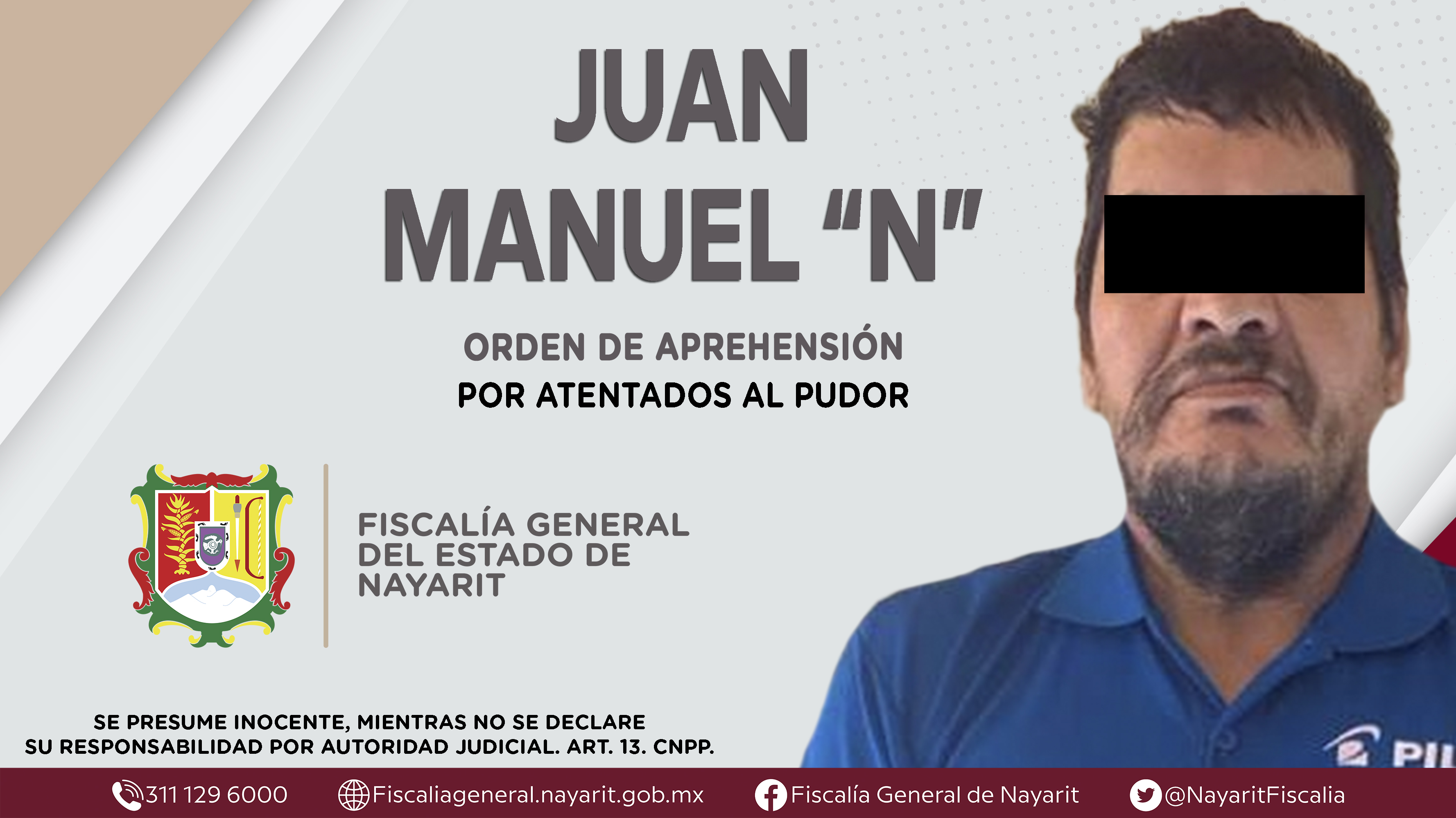 Elementos de la Agencia de Investigación Criminal de Nayarit ejecutaron una orden de aprehensión en la localidad Francisco I. Madero -Puga-, municipio de Tepic contra Juan Manuel “N”, por su presuntiva participación en hechos que según apreciaci...