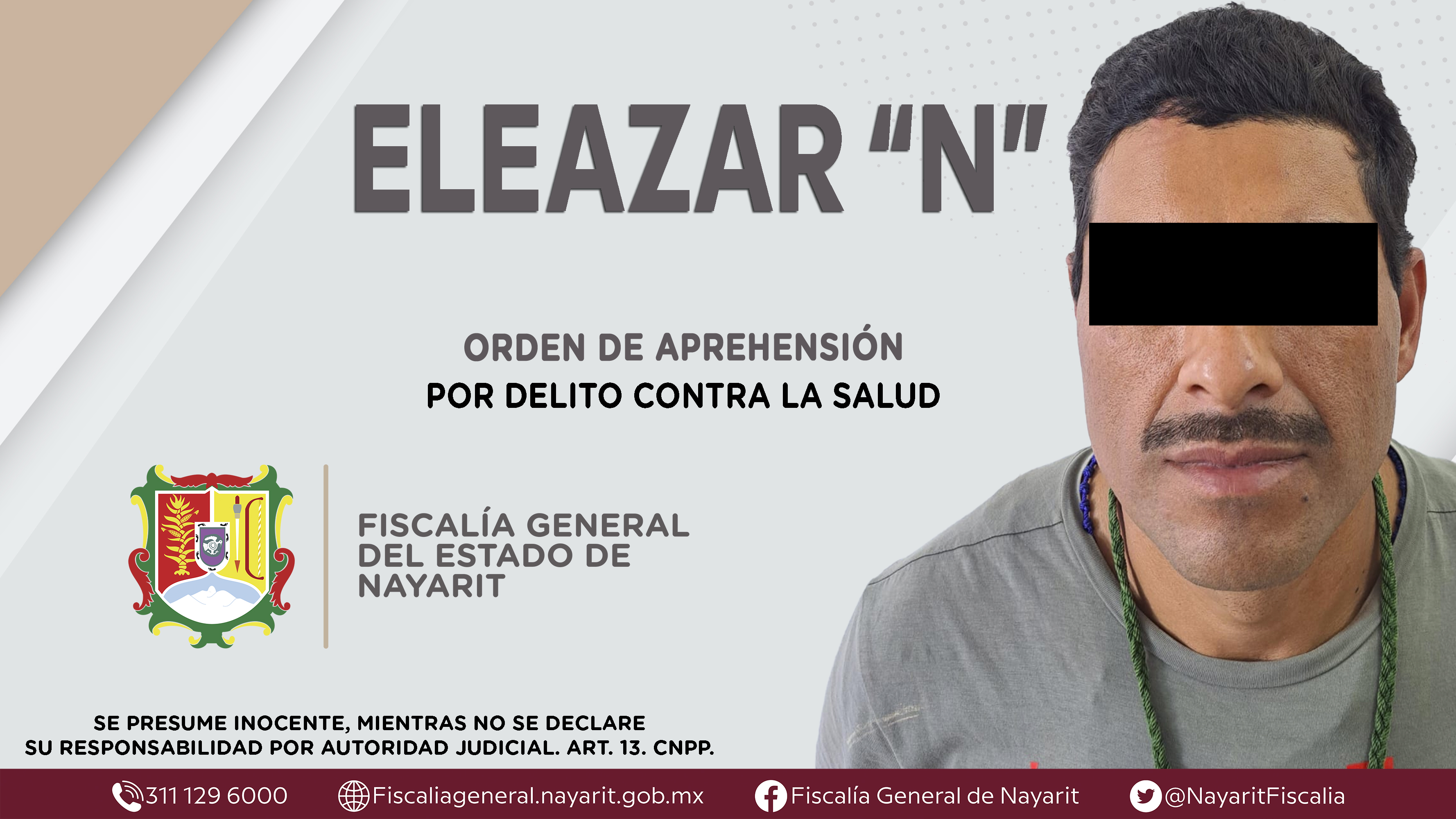La Fiscalía General del Estado a través de la Agencia de Investigación Criminal cumplimentó una orden de aprehensión en la capital nayarita contra Eleazar “N”, por su presunta participación en hechos que bajo apreciación de la ley configuran e...