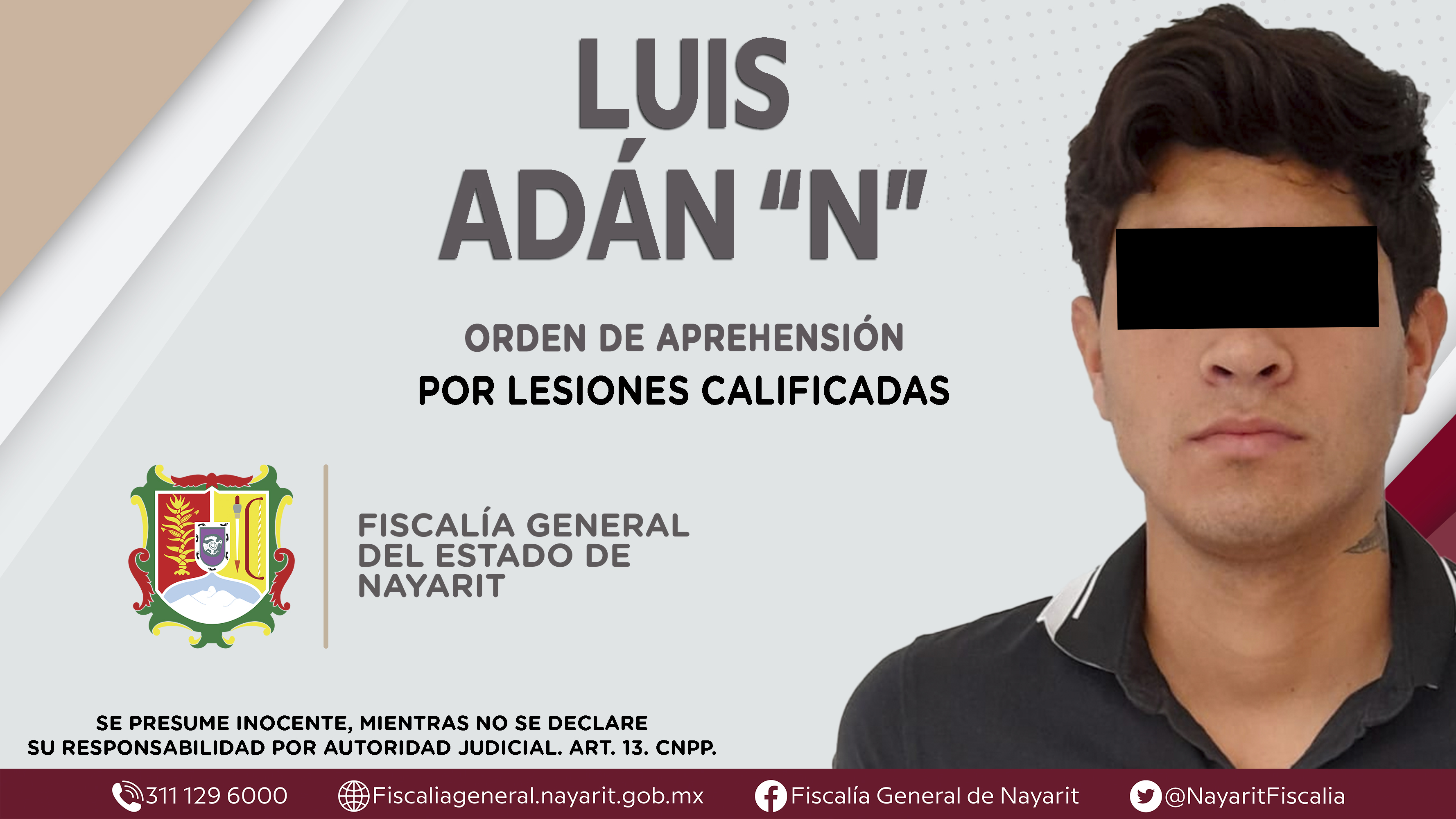 Elementos de la Agencia de Investigación Criminal de Nayarit ejecutaron una orden de aprehensión en el municipio de Compostela contra Luis Adán “N”, por su presunta participación en hechos que según apreciación de la ley encuadran el delito de ...