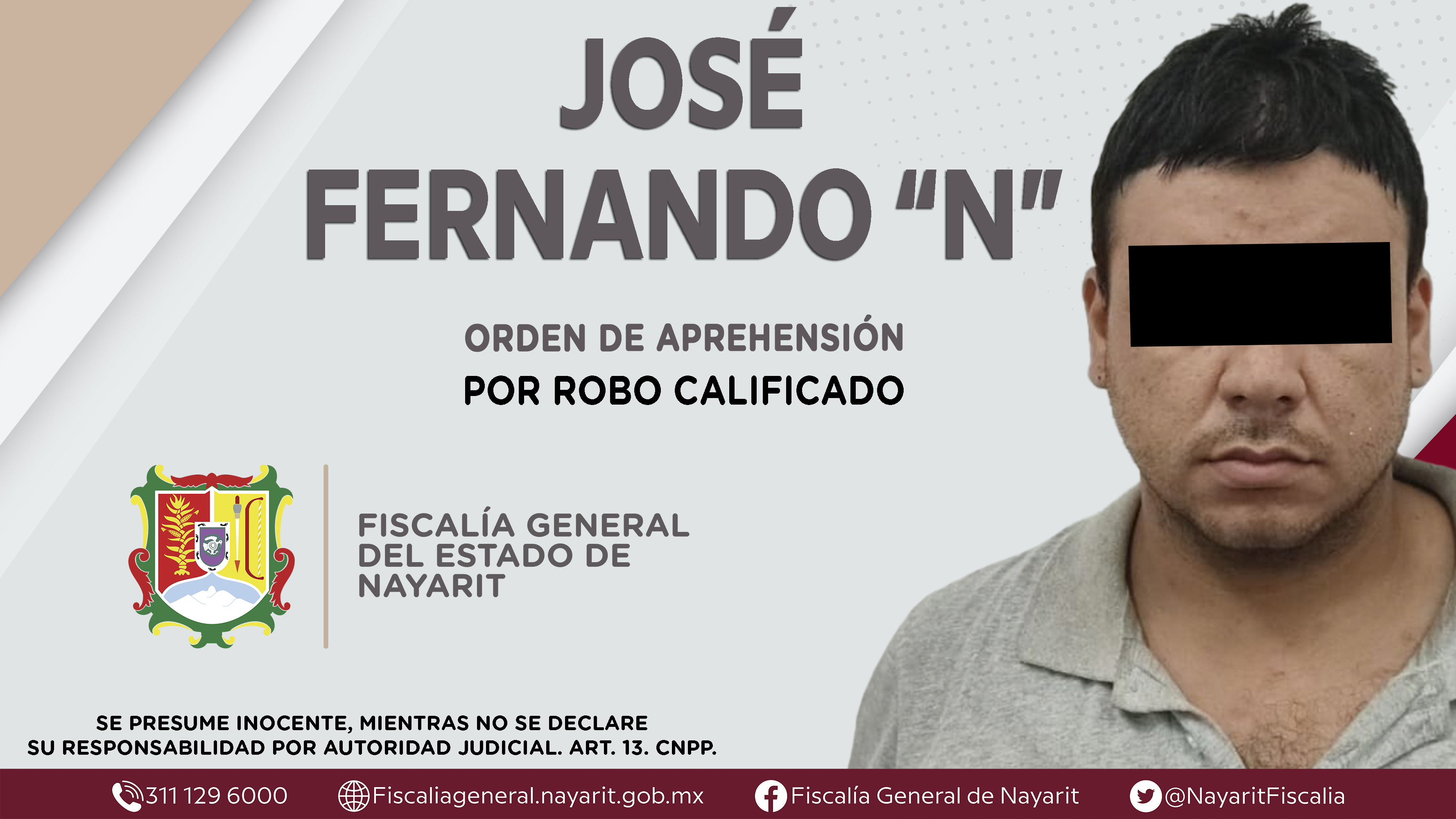 La Fiscalía General de Nayarit a través de la Agencia de Investigación Criminal dio cumplimiento a una orden de aprehensión en la localidad Las Varas, municipio de Compostela contra José Fernando “N”, por su presunta participación en hechos que...