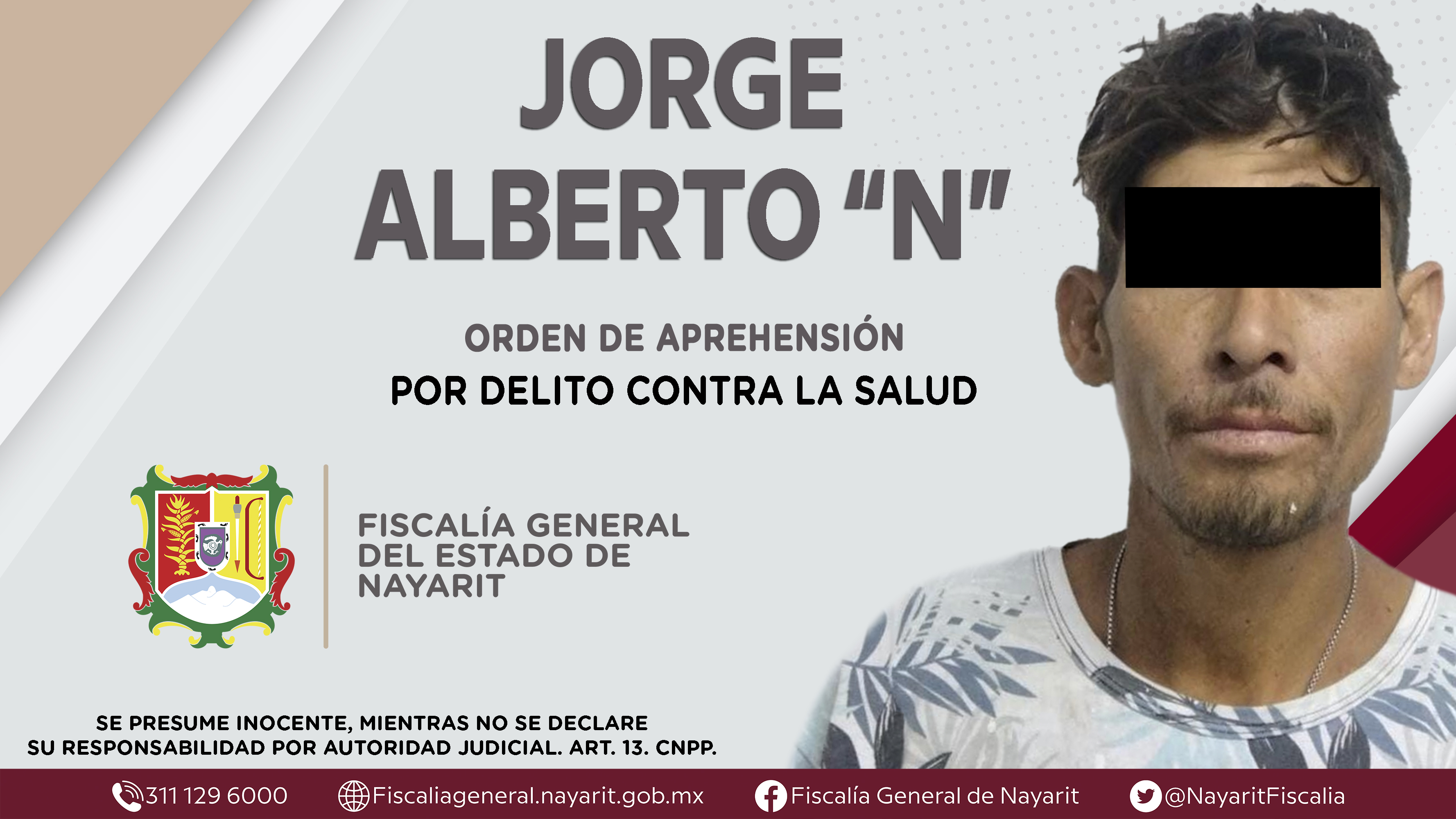 La Fiscalía General de Nayarit a través de la Agencia de Investigación Criminal dio cumplimiento a una orden de aprehensión en la ciudad de Tepic contra Jorge Alberto “N”, por su presunta participación en hechos que según apreciación de la ley...