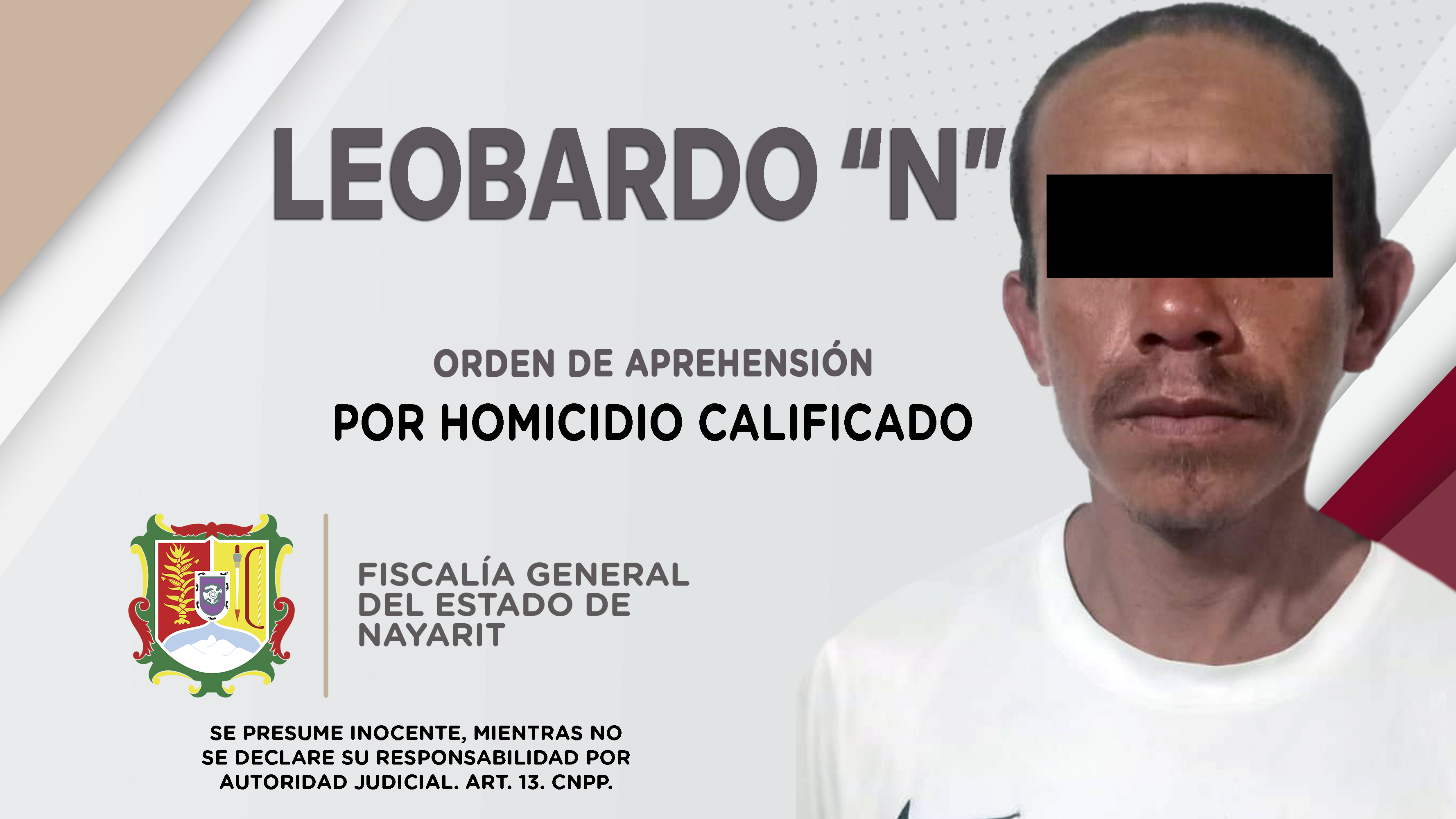 Elementos de la Agencia de Investigación Criminal cumplimentaron una orden de aprehensión contra Leobardo “N”, en la ciudad de Tepic, por su presunta participación en hechos que la ley considera como delito de homicidio calificado.\r\n\r\nEl deten...