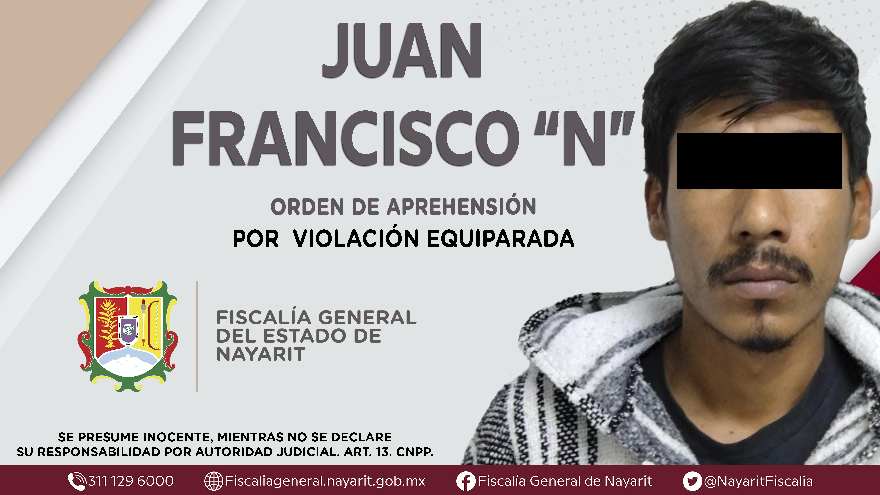 Elementos de la Agencia de Investigación Criminal de Nayarit ejecutaron una orden de aprehensión en la ciudad de Xalisco contra Juan Francisco “N”, por su presunta participación en hechos que según apreciación de la ley encuadran el delito de vi...