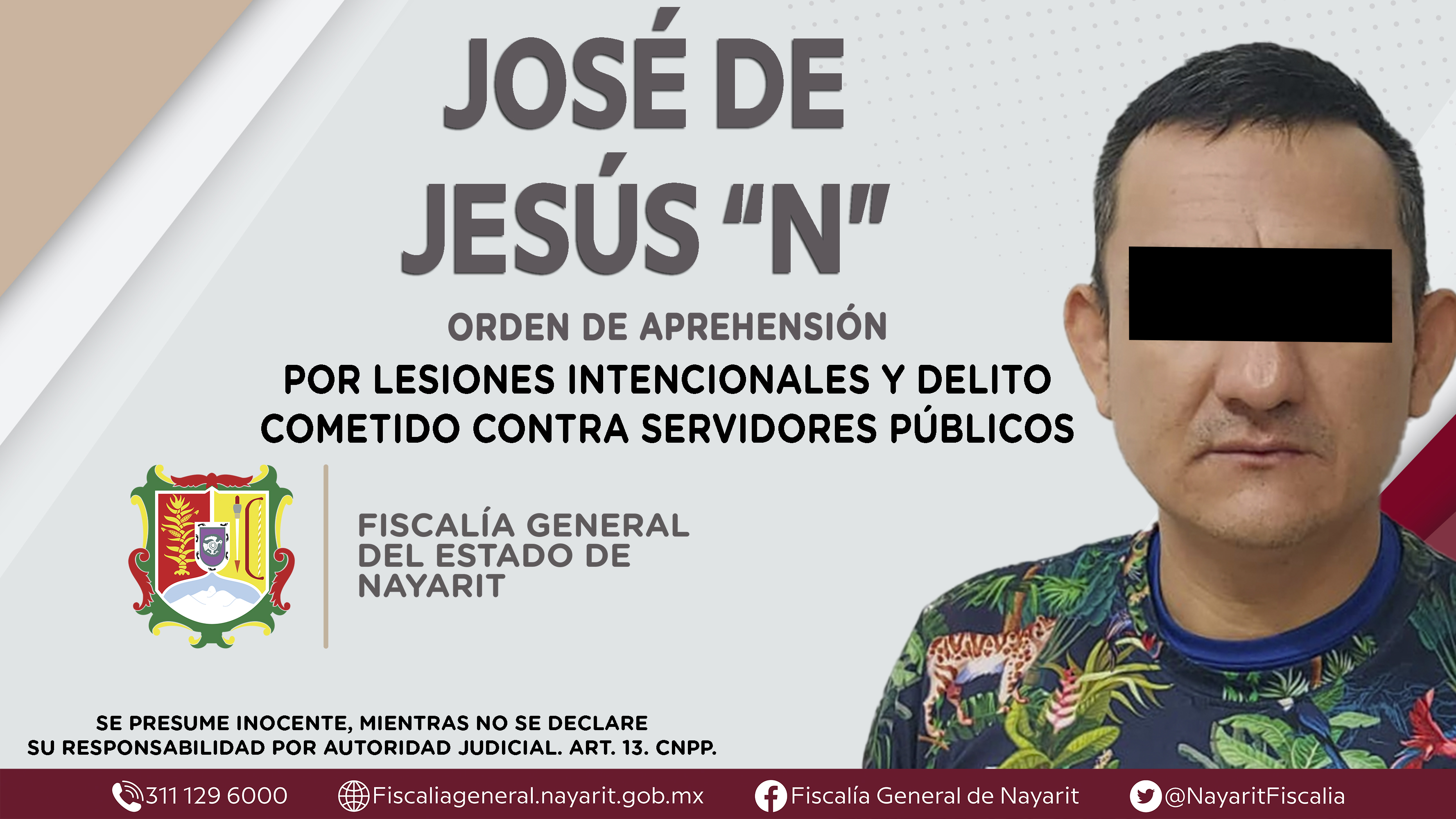 La Fiscalía General de Nayarit a través de la Agencia de Investigación Criminal dio cumplimiento a una orden de aprehensión en el municipio de Bahía de Banderas contra José de Jesús “N”, por su presunta participación en hechos que según apre...