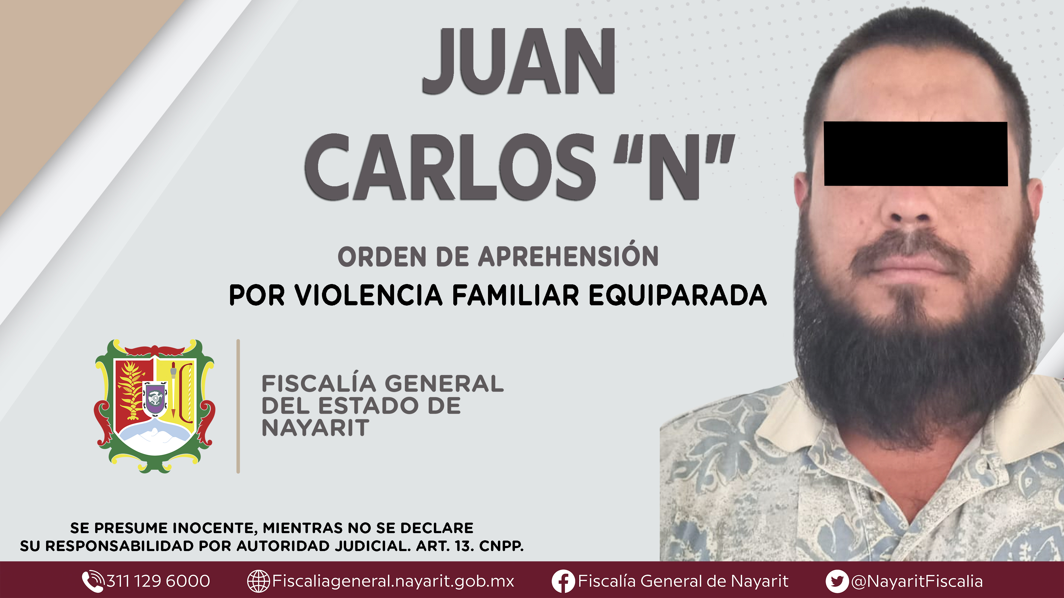 La Fiscalía General de Nayarit a través de la Agencia de Investigación Criminal dio cumplimiento a una orden de aprehensión en el interior del Centro de Readaptación Social \"Venustiano Carranza” contra Juan Carlos “N”
