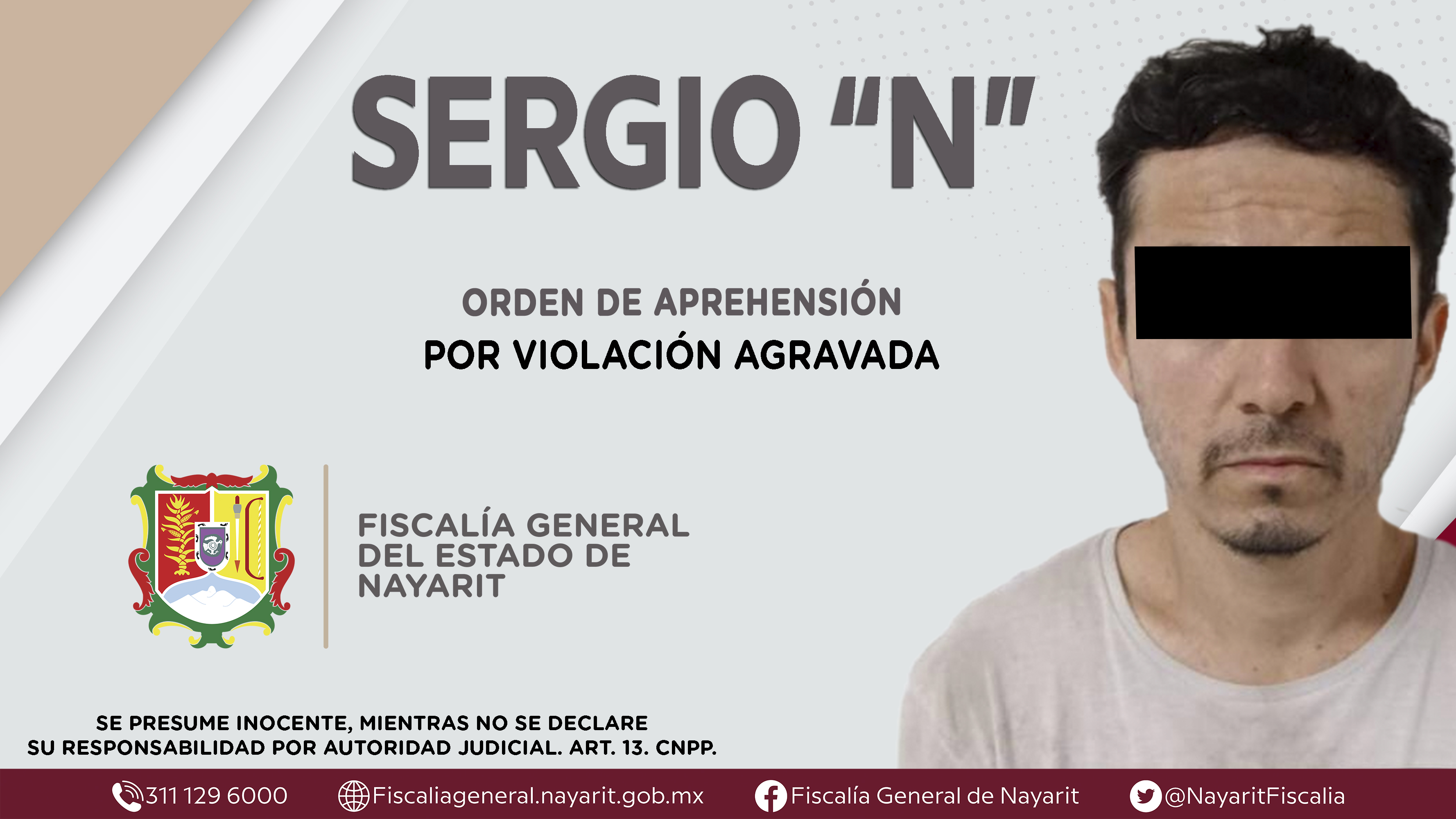 Elementos de la Agencia de Investigación Criminal de Nayarit ejecutaron una orden de aprehensión en la ciudad de Tepic contra Sergio “N”, por su presunta participación en hechos que según apreciación de la ley configuran el delito de violación ...