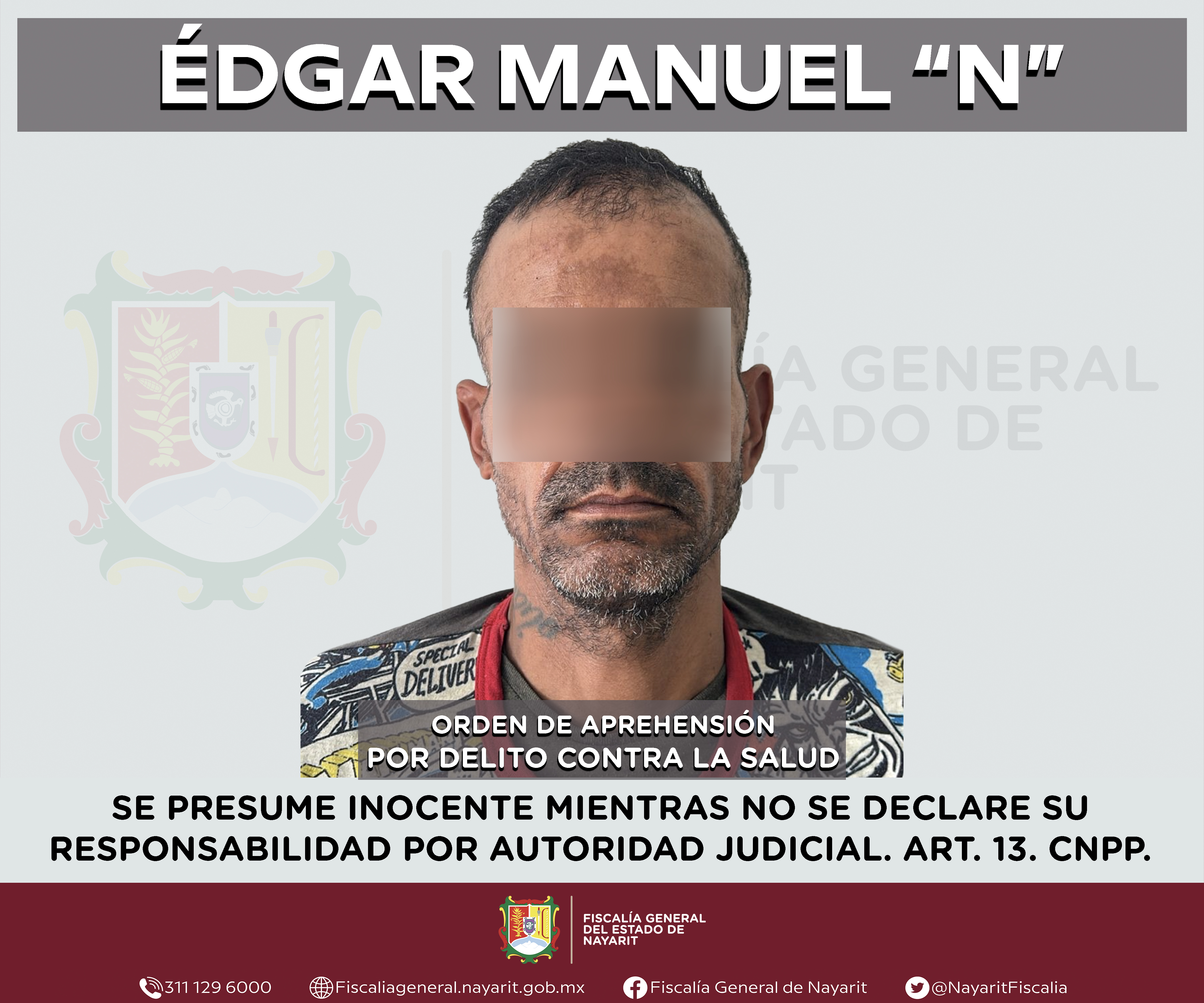 Elementos de la Agencia de Investigación Criminal de Nayarit ejecutaron una orden de aprehensión en la capital nayarita contra Édgar Manuel “N”, por su probable participación en hechos que para la ley configuran el delito contra la salud en su mo...