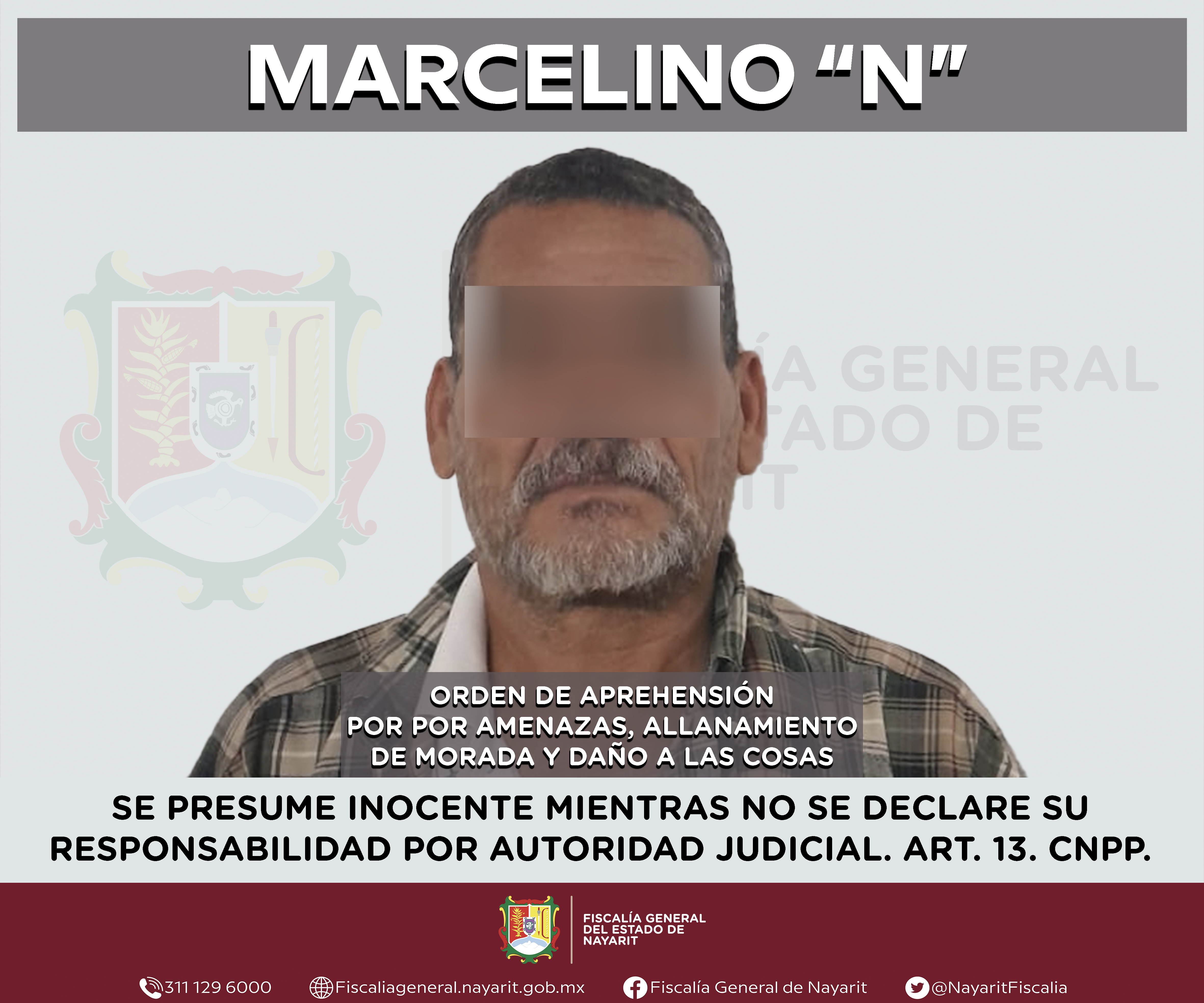 La Fiscalía General de Nayarit a través de la Agencia de Investigación Criminal ejecutó una orden de aprehensión en la ciudad de Tepic contra Marcelino “N”, por su presunta participación en hechos que según apreciación de la ley encuadran los...